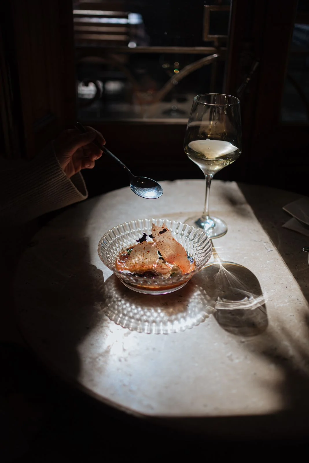 El lugar cobra vida en una esquina de una de las plazas más lindas de la ciudad: la Plaza Italia. Acá, la arquitectura clásica se combina con un interior lleno de texturas y calidez. Es un espacio versátil que se adapta a cada ocasión. Y ahí, justamente, está su encanto. La cocina, a cargo de Matías Tyrrell y Tomás Orellano, apuesta por el producto de estación y por una dinámica pensada para que los platos se lleven al centro de la mesa y se disfruten en conjunto. Estamos hablando de una selección de quesos, fiambres, focaccias, opciones frías y calientes que invitan a mezclar y probar.