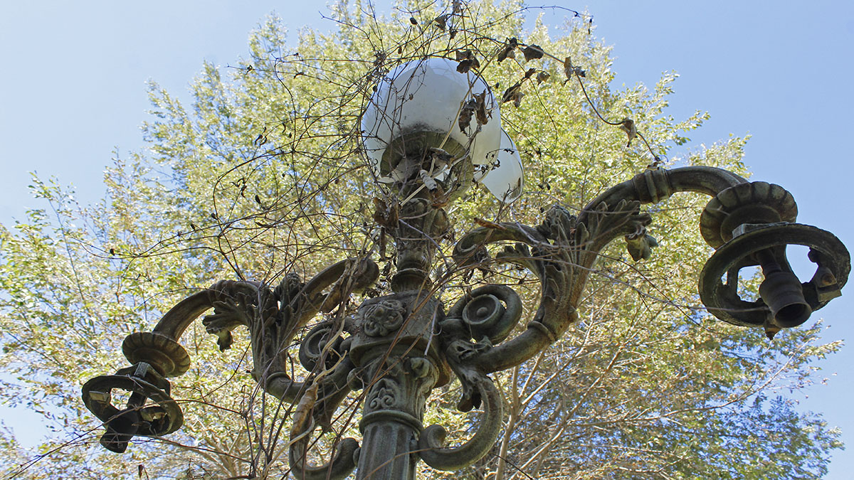 El jardín, originariamente fue diseñado con el estilo de los jardines de Versalles. Había macizos de flores, senderos, pérgolas y estatuas, entre ellas la de Nefertiti. Entre las antiguas farolas y las pérgolas, Lucas Bustos levanta su cocina, será un espacio vidriado, donde se podrá ver la preparación de los platos.