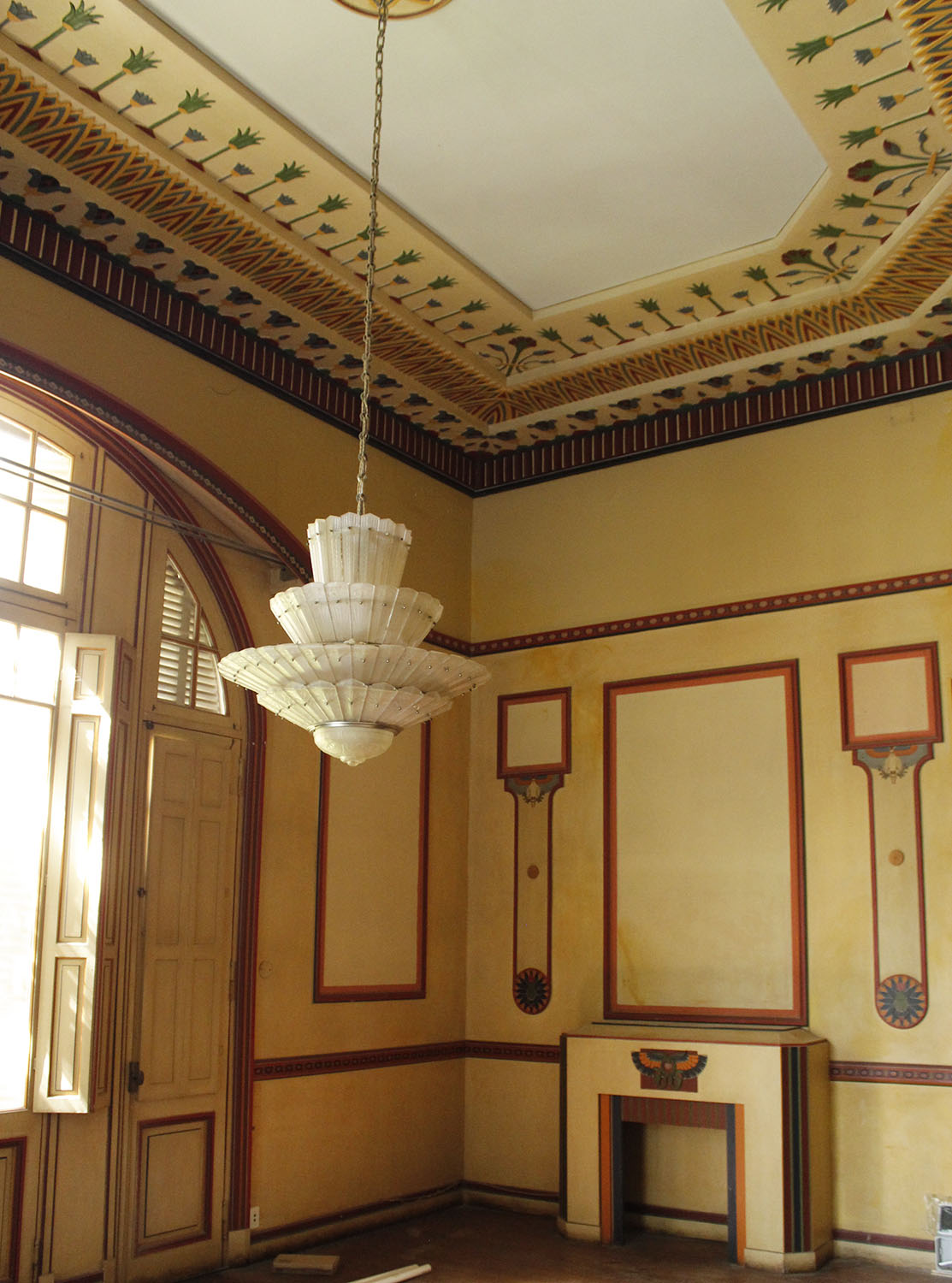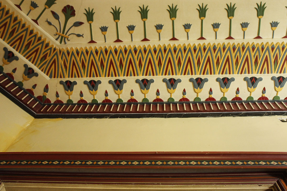 En su interior, un salón celeste que se usaba para tomar el té y el espectacular Salón Egipcio son fabulosos. La mansión que se inauguró en 1921 fue decorada con muebles comprados en Europa. Miguel Aguinaga y su mujer, Noema Baca traían de sus viajes, objetos y muebles que adquirían en distintos países. «En la sala egipcia, además de las pinturas que aún hoy decoran los techos y las molduras, una serie de gobelinos que ya no están, le daban un toque exótico», nos cuenta Sofía.