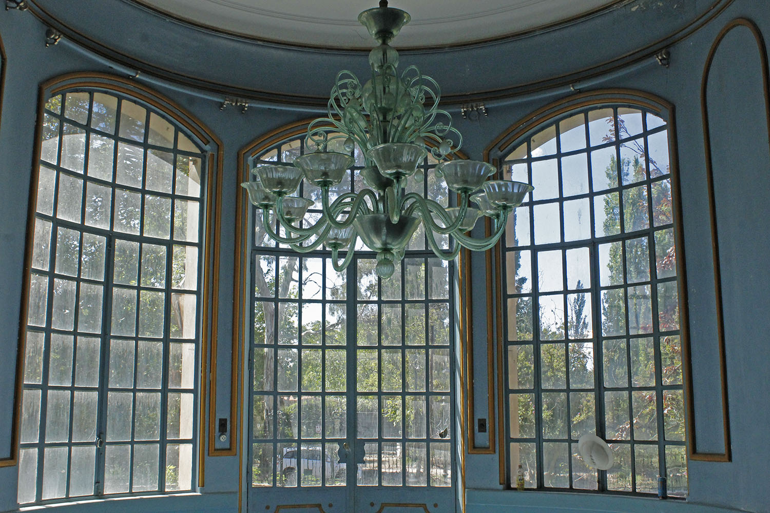 Llaman la atención las arañas que cuelgan del techo de cada sala; en el salón celeste, por ejemplo, una lámpara de cristales de Murano combina su especial color turquesa con la pintura de las paredes en el mismo tono. Se suma a los coloridos muros originales el salón principal para el que Sofía buscó un rojo especial que realza las salas contiguas.