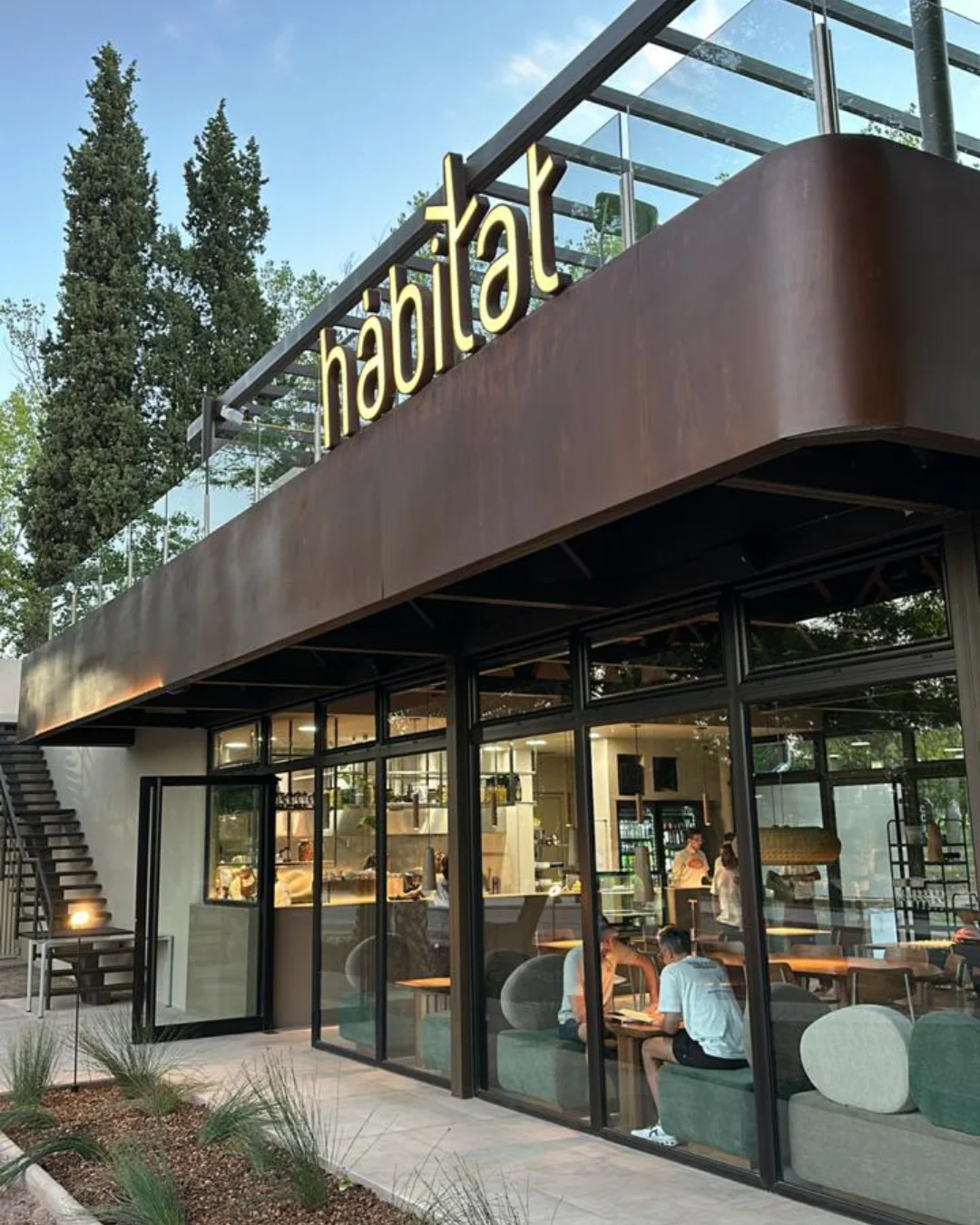El edificio de Hábitat se ancla al entorno natural que lo rodea, combina y se camufla al tener colores en gamas terrosas y adopta rasgos arquitectónicos del Museo de Ciencias Naturales y Antropológicas Cornelio Moyano para no romper con la estética del prado. Además, prioriza las visuales desde adentro hacia afuera porque al estar en el parque se busca que los comensales lo miren y disfruten para así desconectar por un momento.