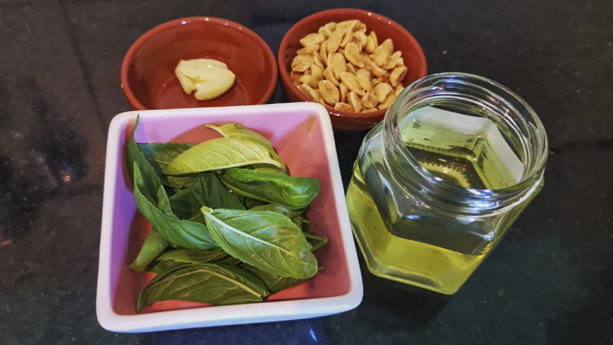 A la hora de elaborar el pesto, Fozzatti coloca la albahaca, el ajo, aceite de girasol u oliva, sal y pimienta en un mixer. Y una vez que se vaya a servir, se le suma el maíz sin sal para que quede crocante.