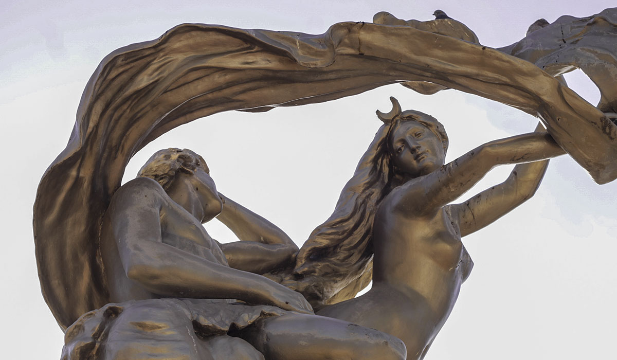 La Aurora. Se trata de una estatua lampadaria que tiene un sentido simbólico, no funcional. Está realizada en hierro con técnica de fundición y tiene 1.50 metros de alto. Durante el siglo XIX, estas alegorías fueron cobrando importancia en tanto las ciudades incorporaban el moderno alumbrado.