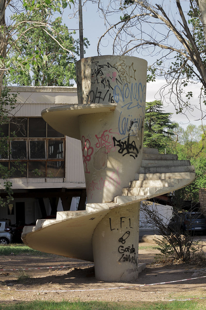 Es el caso de «la escalera infinita», la cual se encuentra ubicada justo al lado del edificio Cuba. Solitaria y sin un uso funcional, resulta una estructura extraña de ver. Hay dos teorías acerca del origen de la escalera en espiral; algunos dicen que perteneció al antiguo laberinto, otros creen que formó parte de las obras construidas para la Feria de América.