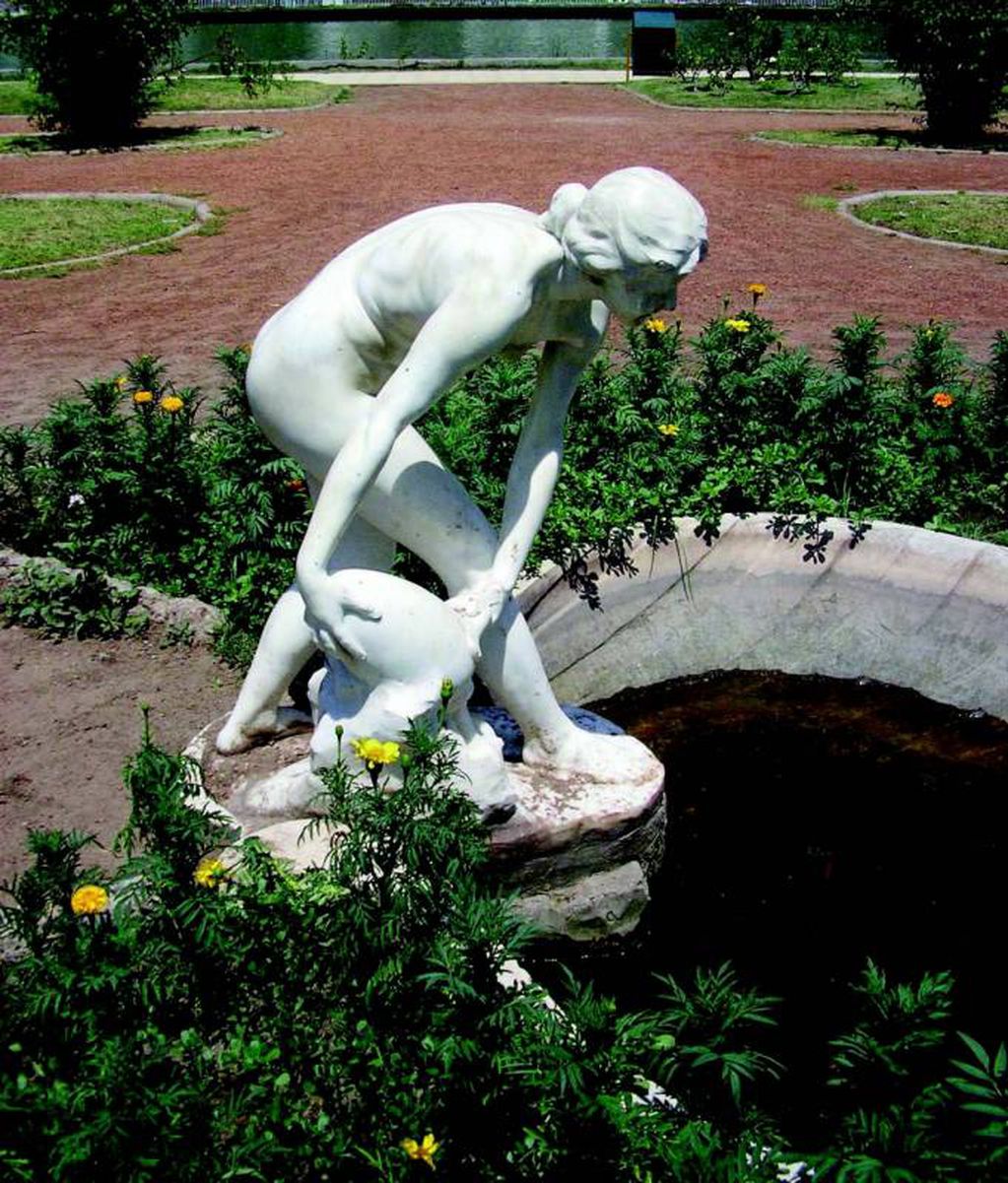 Al comienzo del rosedal se encuentra la Jugadora de los huesillos, reproducción de una obra hecha originalmente en mármol de Carrara expuesta en el Museo de Pérgamo en Berlín. Es de hierro fundido y fue realizada por la fundición francesa de Antoine Durenne. Representa a una joven niña absorta en el juego del astrágalo que se practicaba con pequeños huesos.