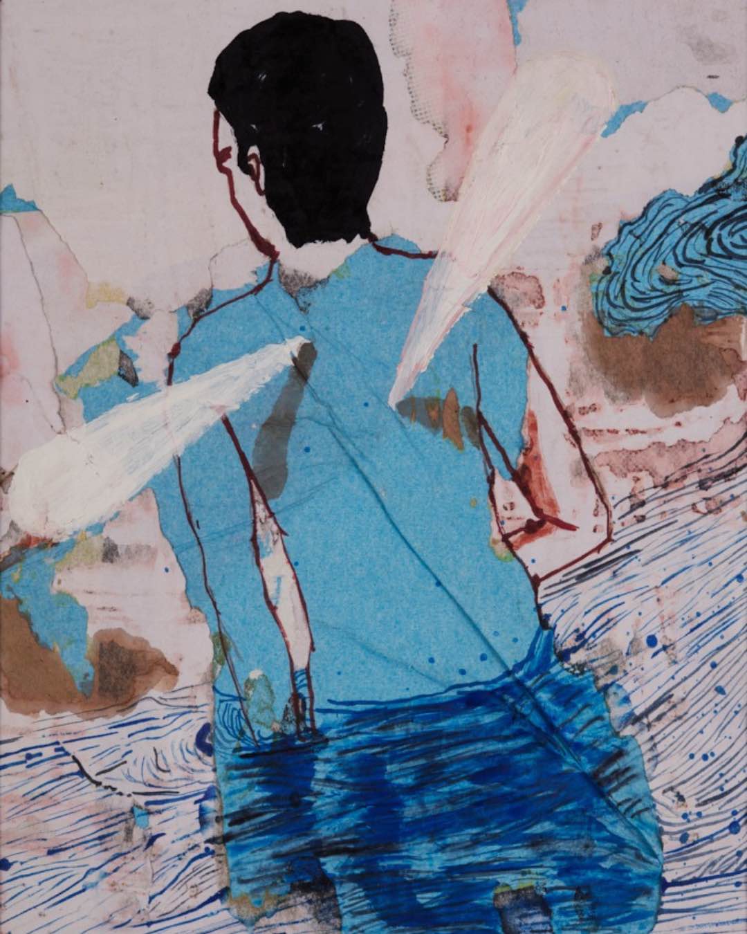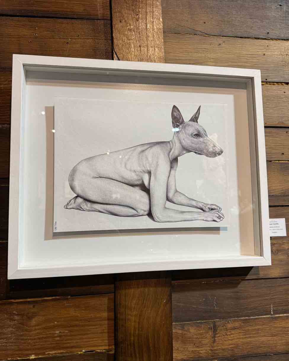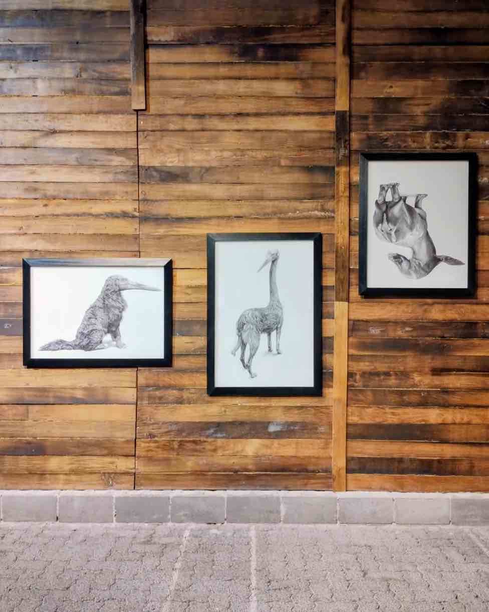 En paralelo, Juan Castillo despliega dibujos que oscilan entre lo figurativo y lo abstracto: híbridos, bestiarios y trazos digitales donde criaturas simbólicas conviven con restos animales que se vuelven etéreos.
