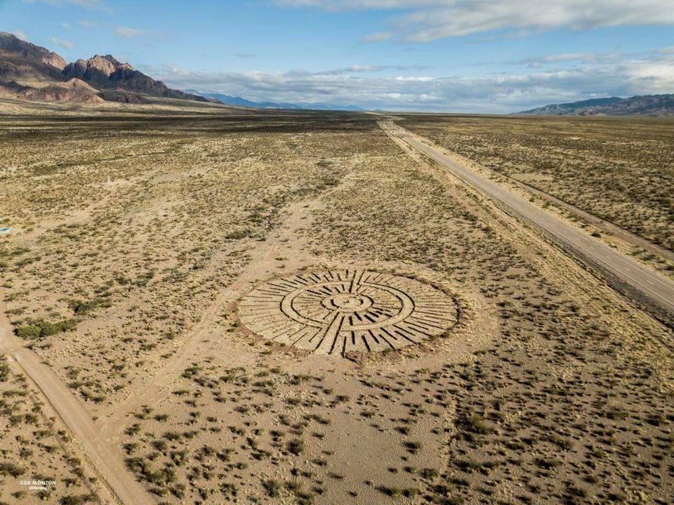 Con calzado cómodo empezamos a transitar el primer sendero que nos lleva a «Lybrys, el laberinto de la luna», de 2.500 m2, realizado por la artista con 23 camionadas de piedras de Uspallata. «Me encontré en un despojo absoluto de materiales y surgió, como surgen las obras para mí, como una inspiración natural, haciendo uso del sentir, la piedra. Empecé a diseñar esto de poder ingresar a una obra, no solo verla terminada sino que uno pueda decidir su camino una vez adentro, que uno se sienta contenido y vaya creando su propio destino».