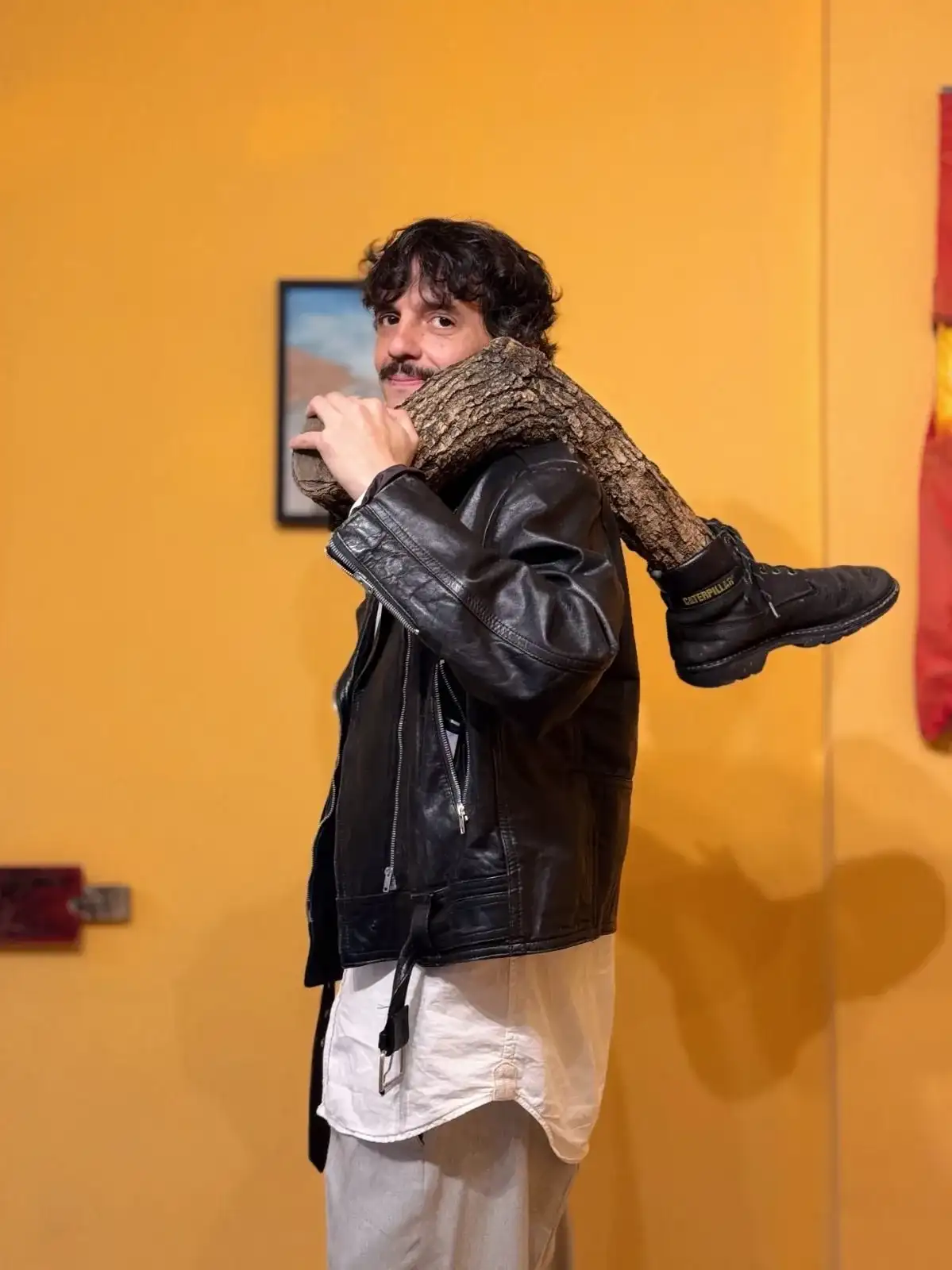 Para esta exposición escogió dibujos, pinturas y algunos objetos pertenecientes a la serie “Las partes que me faltan”, una búsqueda actual en la que, a través de la recolección de objetos de la naturaleza que le interesan, hace un ensamble con objetos industriales, como es la rama de un árbol que unió a un borcego para imitar a una pierna.