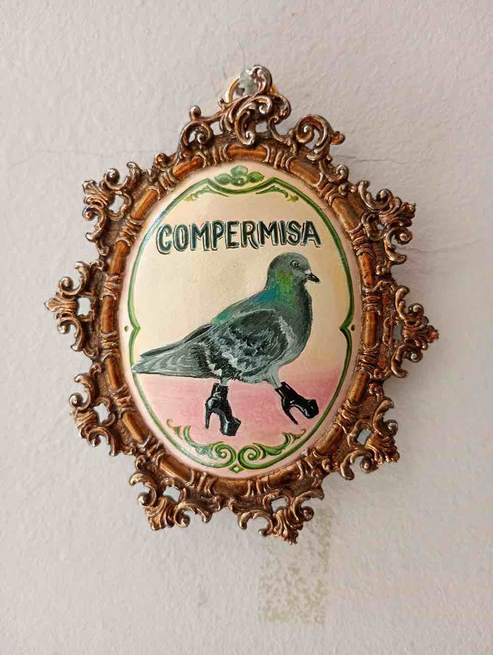 Su obra se mueve en una tensión constante entre la belleza ornamental y el mensaje disruptivo. Donde la tradición pondría, por ejemplo, a Carlos Gardel, ella pinta un meme de una paloma usando zapatos de taco o reversiona frases de cumbia para hablar de violencia institucional. «Me gusta cruzar dos lenguajes que parecen totalmente distintos. Combinarlos hace que tengan una contemporaneidad. Es una forma de volver a traer el fileteado, mantenerlo vivo, reivindicarlo», asegura.