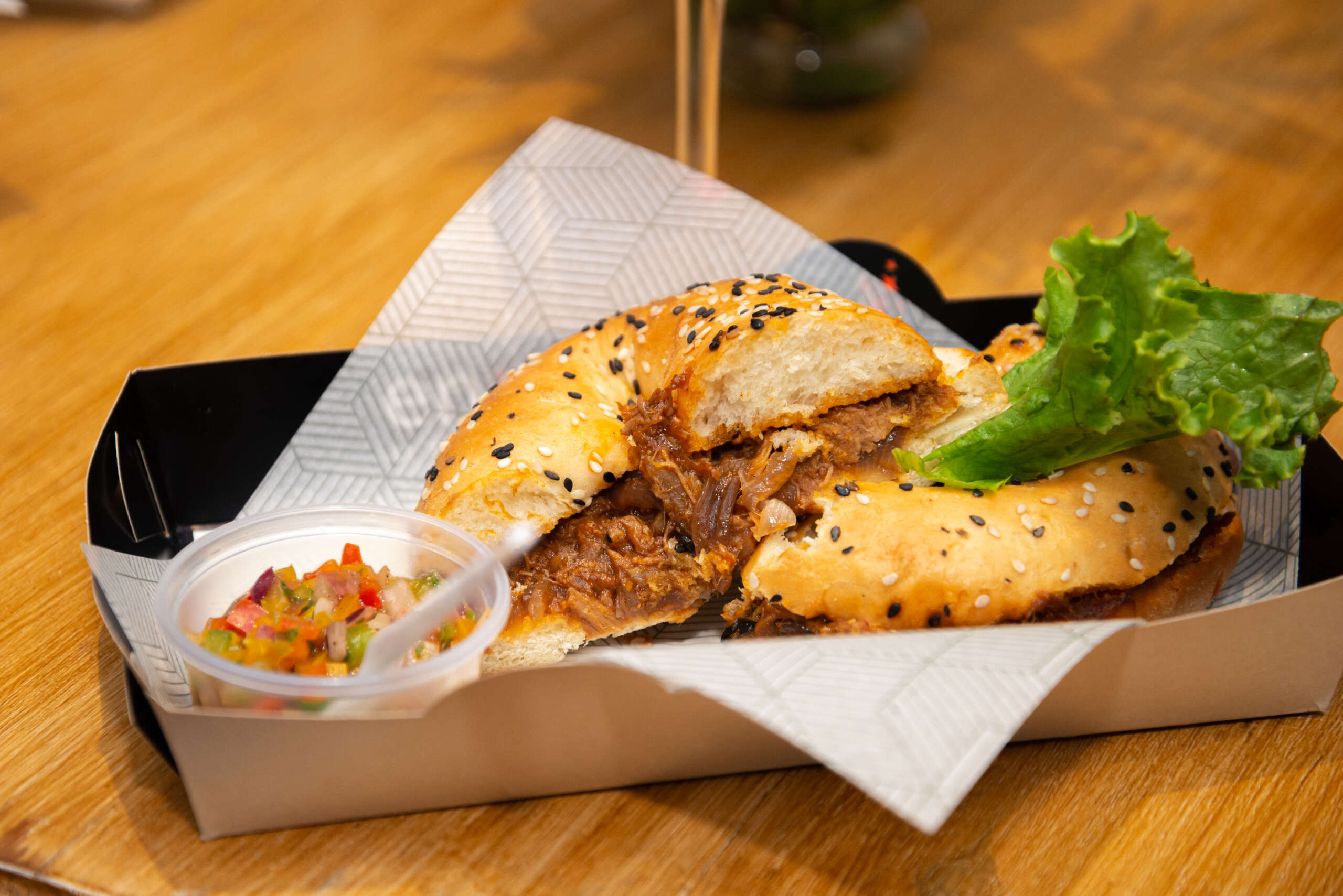 Para acompañar las propuestas vitivinícolas, el chef ejecutivo Martín Chacón elaboró opciones ideales, como bagel de bondiola braseada, ciabatta de bife ancho asado con pepinillos y mostaza antigua, y falafel con guacamole y emulsión de yogurt y menta. Quienes lo deseaban, podían adquirir su tickets y canjearlo por una ración práctica.