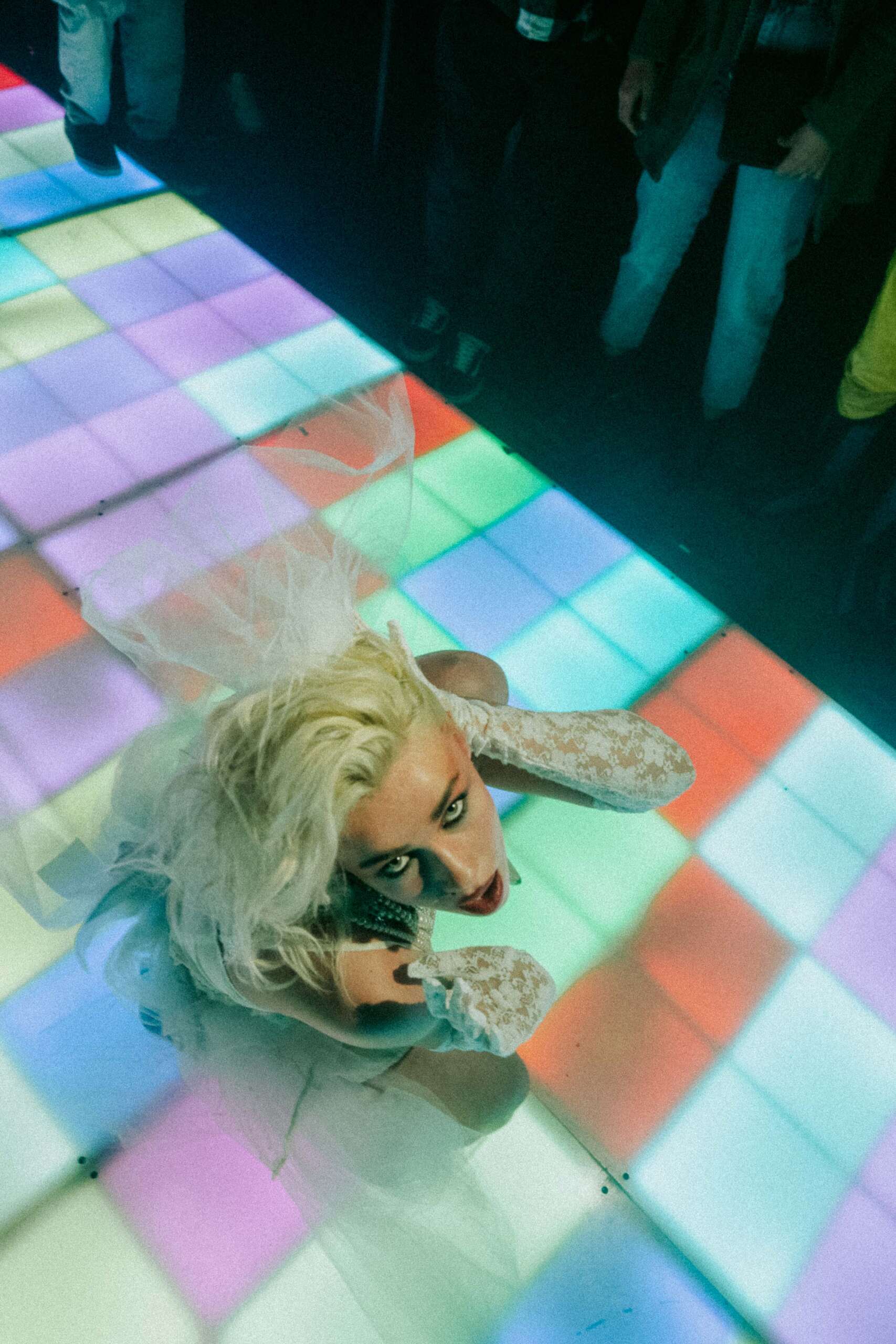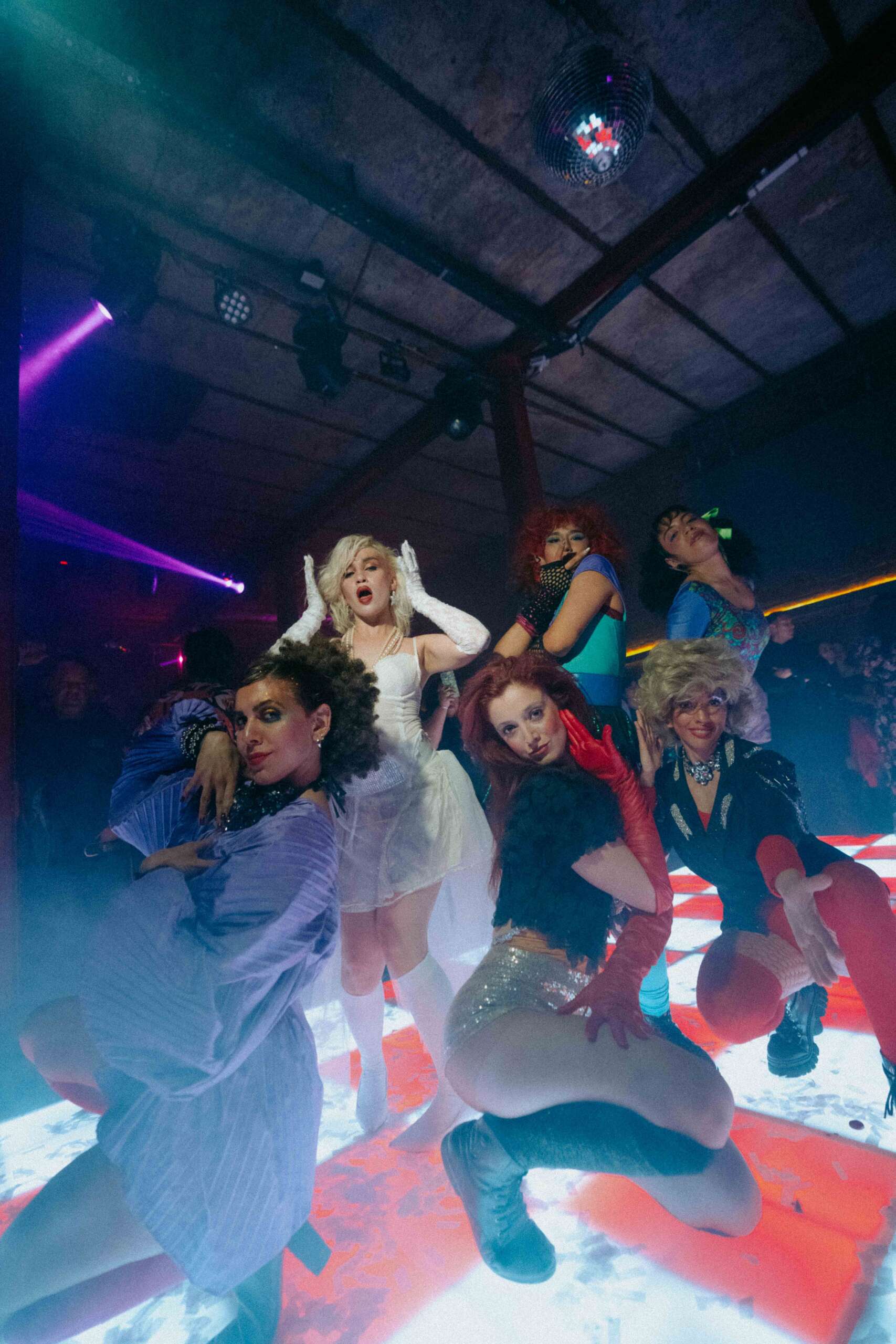 Una de las características de la «Back to 80’s» es su piso de colores que recrea la plataforma de «Fiebre de sábado por la noche», allí bailan todos, desfilan personajes random de películas y un grupo de bailarines invita a los presentes a ser parte de coreografías de films icónicos.