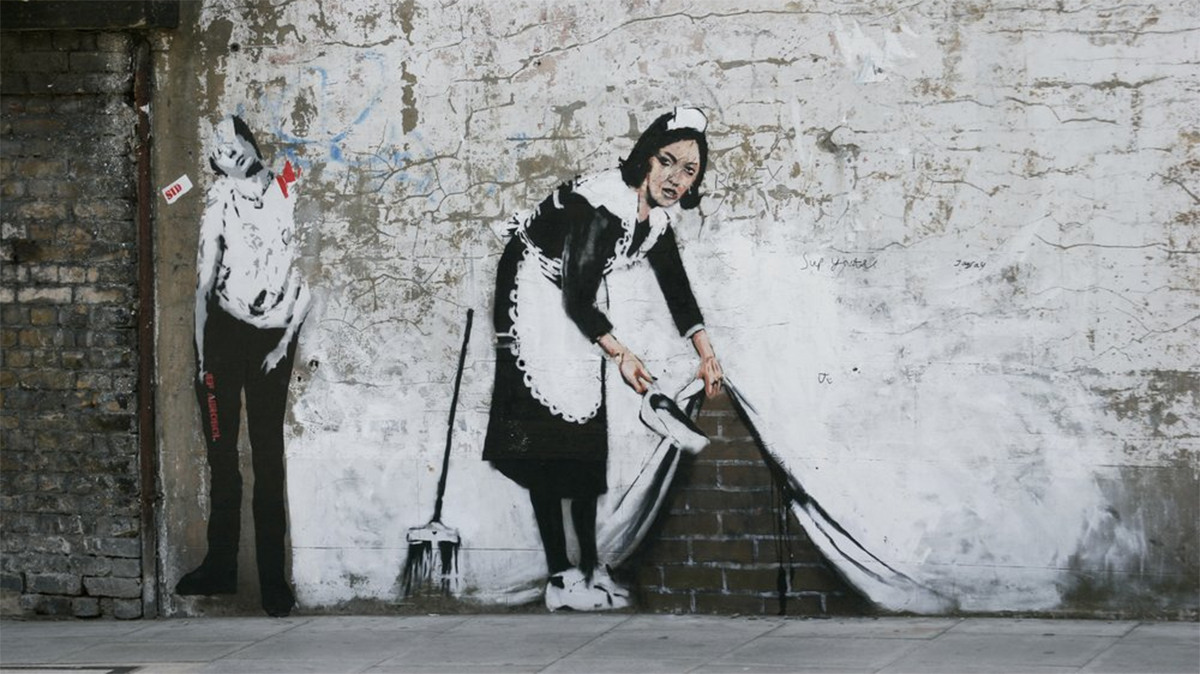 Creador de un arte crítico y efímero, Banksy es exponente de los artistas urbanos por su mirada irónica sobre el sistema y sus llamativas producciones, pero al mismo tiempo representa el efecto contrario al ser consumido y asimilado por el mercado del arte y puesto en un lugar de culto.