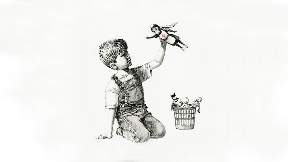 Y este año se subastó la obra Niño jugando con enfermera (2020) cuyo valor fue donado al sistema de salud británico y con el cual el artista homenajeó al personal de salud en el transcurso de la crisis sanitaria por el coronavirus.
