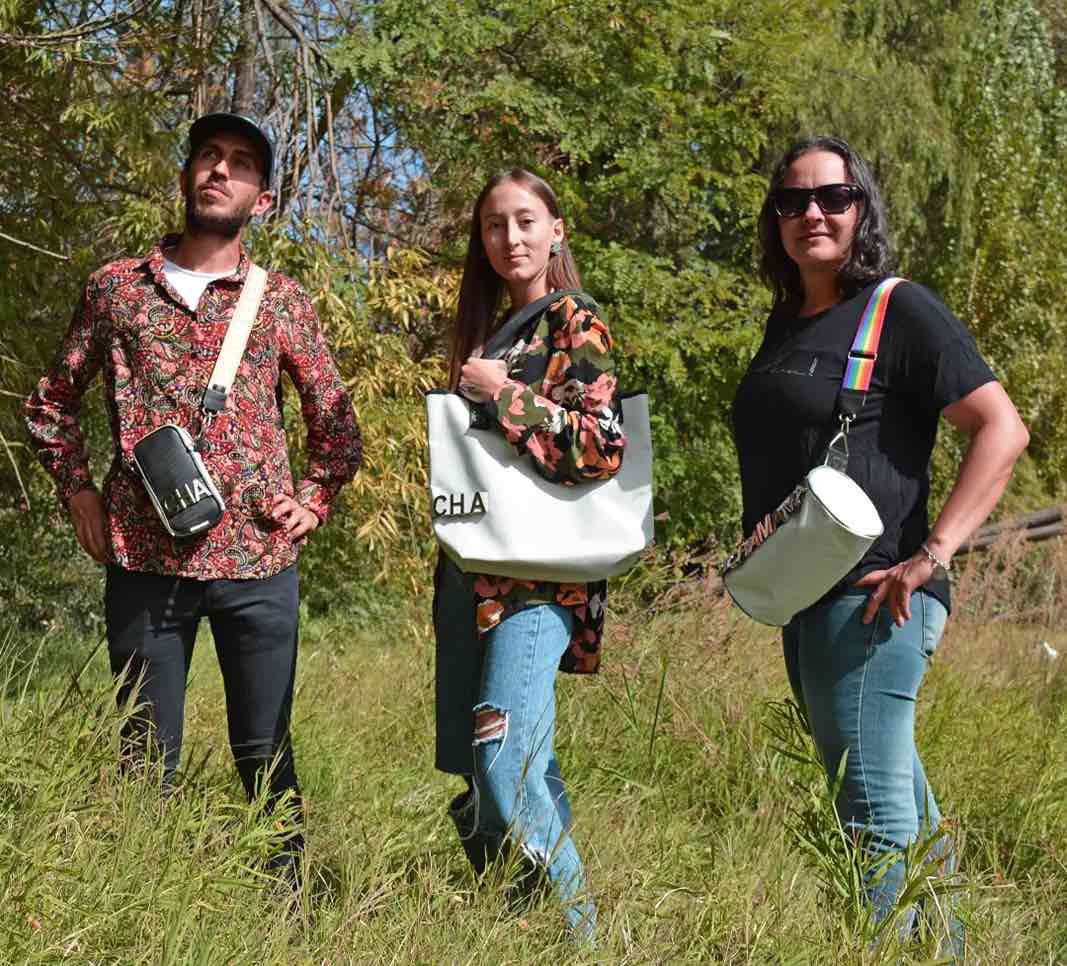 Chamama se mueve en ese terreno, fusionando caucho con desechos textiles de cortinas blackout para crear bolsos, riñoneras y mochilas en las que su origen sigue siendo visible. La lógica es distinta, pero el punto de partida es el mismo: el descarte.