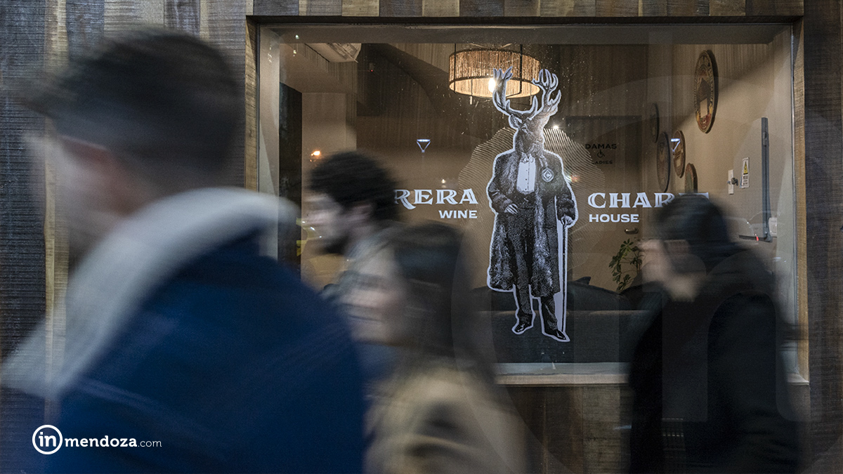 Cabrera Charif Wine House tiene diferentes ambientes para que cada persona escoja. En planta baja está el living, el salón con mesas y barras laterales para ver lo que ocurre en las calles de Mendoza, la barra principal y un patio español de los años 40 que muchos eligen para brindar de pie.