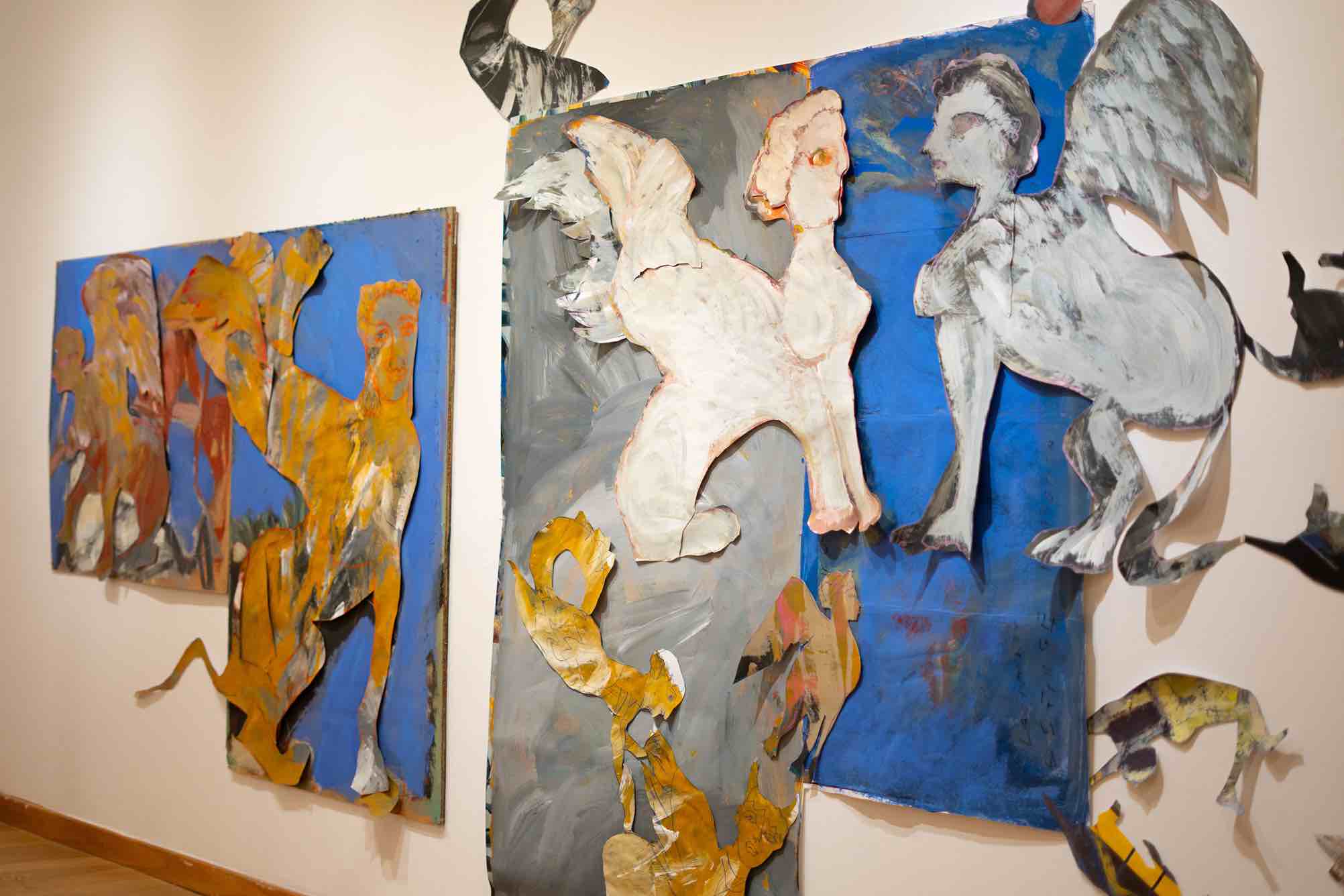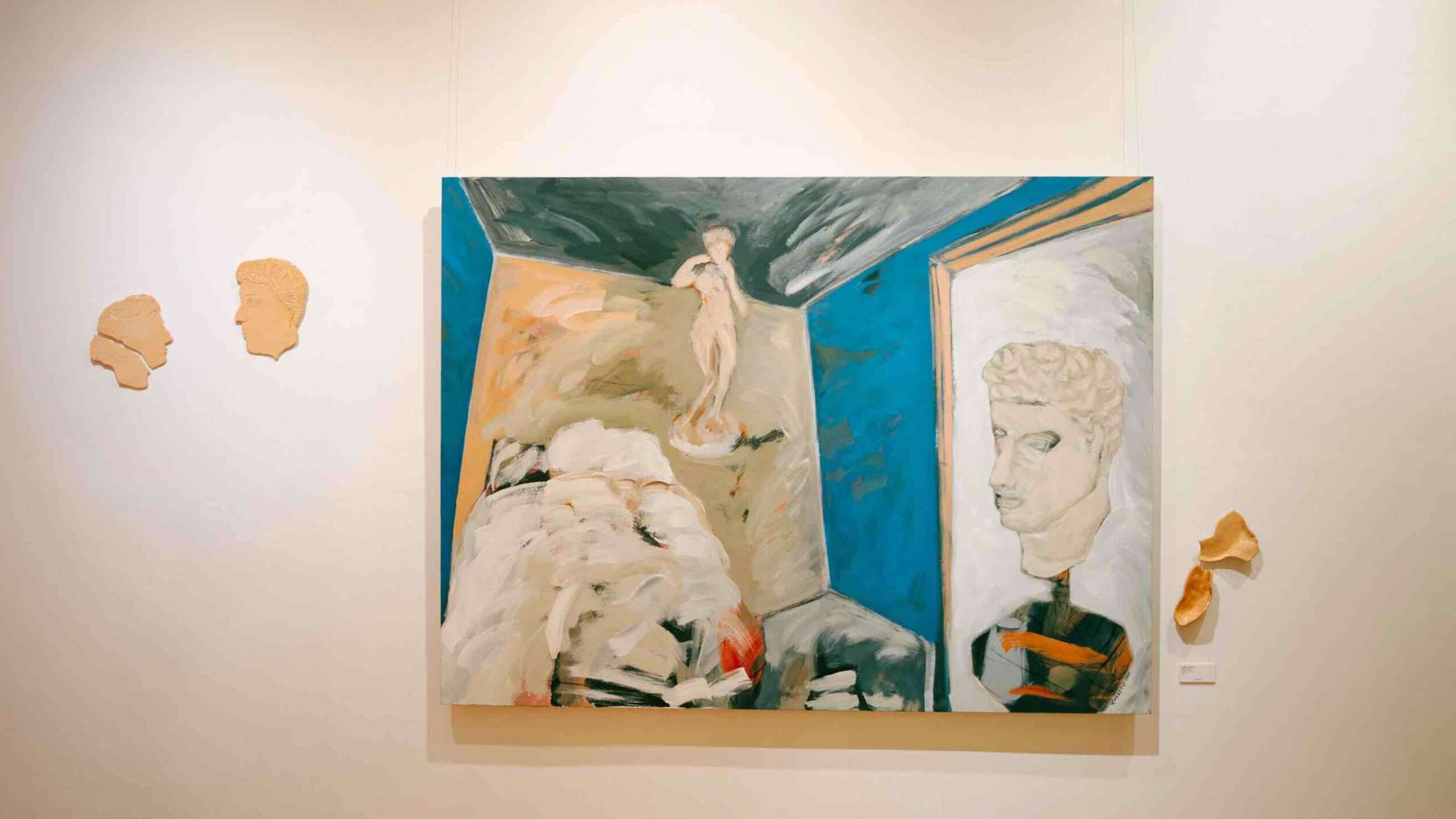 Pero hay una novedad que rompe con la bidimensionalidad: la cerámica. Dispersas por las paredes, acompañando a los grandes lienzos, hay piezas de arcilla modeladas por la propia artista.