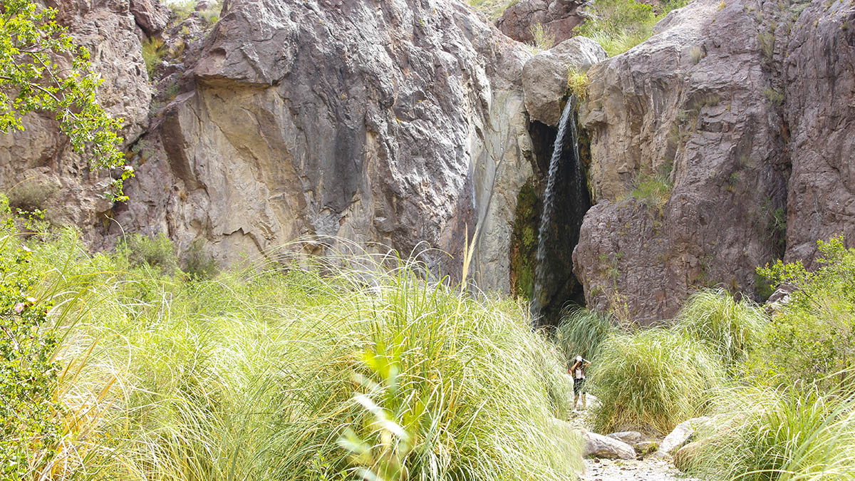 Cascada del Angel: No es fácil ubicar el acceso por eso te sugerimos seguir las indicaciones de wikiloc. Queda en Potrerillos a la altura de la Quebrada del 55 (km 55). Una vez que localices el ingreso tenés que cminar aproximadamente 40 minutos por una cañada muy bonita que sigue el curso de un arroyo. Pasarás por una parte con rocas y otras más llanas con gran cantidad de plumerillos. Al final una gran cascada cae como cortina de agua sobre lo que podría ser el ingreso a una pequeña cueva. Para disfrutar en familia de un paseo sin dificultades y bañarse cuando hace calor.