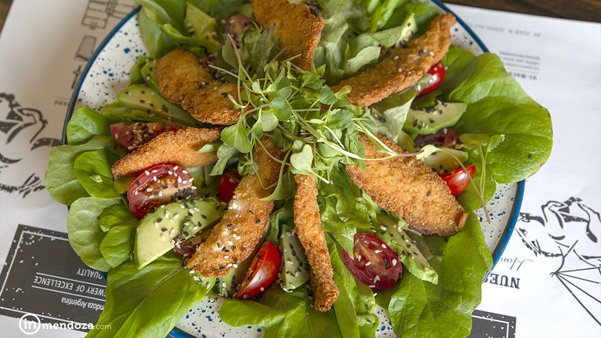 A la pizza Chachingo (bondiola ahumada, cebollas caramelizadas, morrones asados y brotes) le queda muy bien la APA o una Blond, así no se invaden los sabores de la comida sino más bien, se resaltan. En el caso de la ensalada pollo crispy (hojas verdes, tomates cherrys, palta y bastones de pollo rebozados), Alan recomienda maridarla con una cerveza Irish Red: «Con maltas caramelo, va bien con los verdes y sobre todo con la rúcula; al ser amarga contrasta con la bebida».