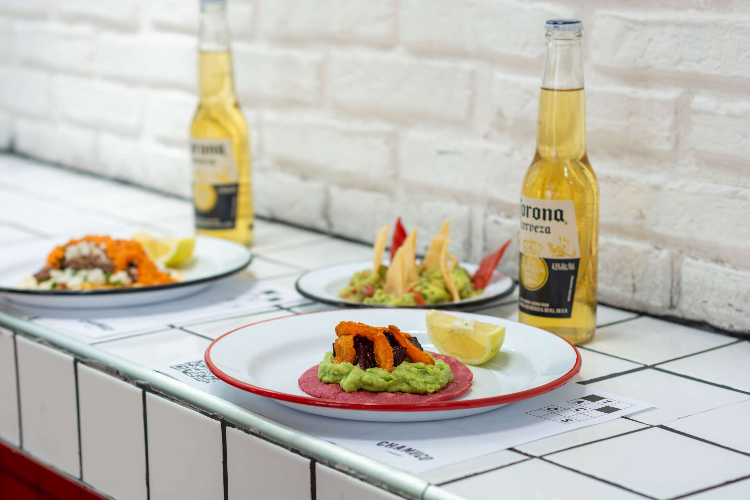 Una muy buena alternativa para compartir es la opción «Pa la Raza», que rinde ocho tacos: llega a la mesa la tabla con la carne elegida por el comensal, tortillas de las dos clases, cebolla asada, guacamole, pico de gallo, frijoles, salsa roja, aderezo Chamuco y totopos.