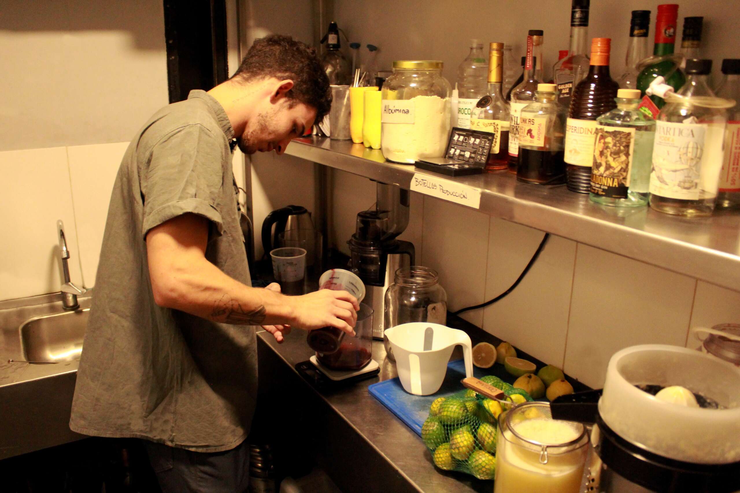 “Todo surgió con la idea de que existiera la posibilidad de contar con un espacio físico para producir y no caer en la producción sobre la barra o en la cocina. Tiempo antes el bartender solía producir en la cocina sobre el cocinero, contaminando ambas cosas”, cuenta Sebastián Ortega, jefe de barra en Charco y referente mendocino de la coctelería.