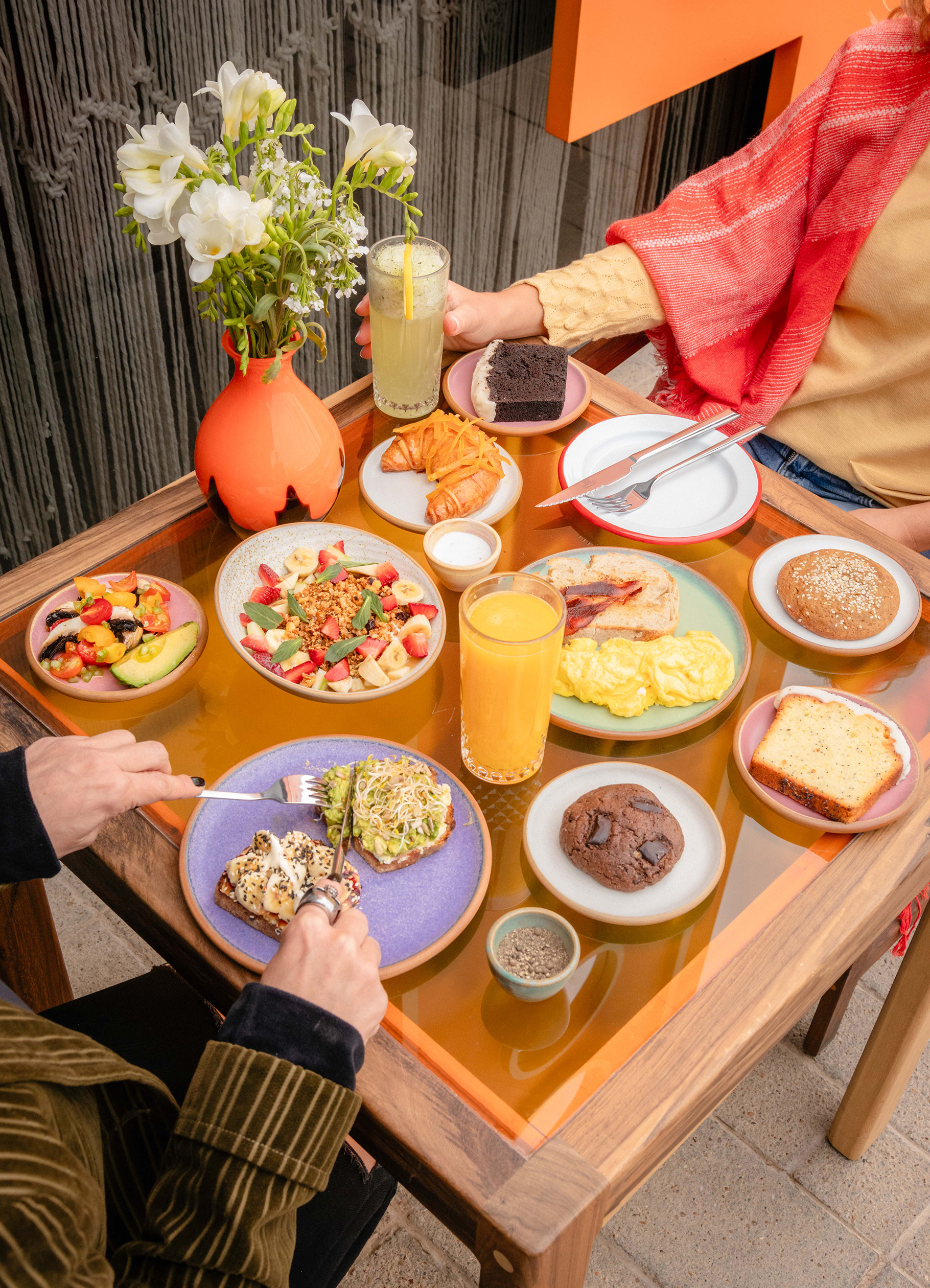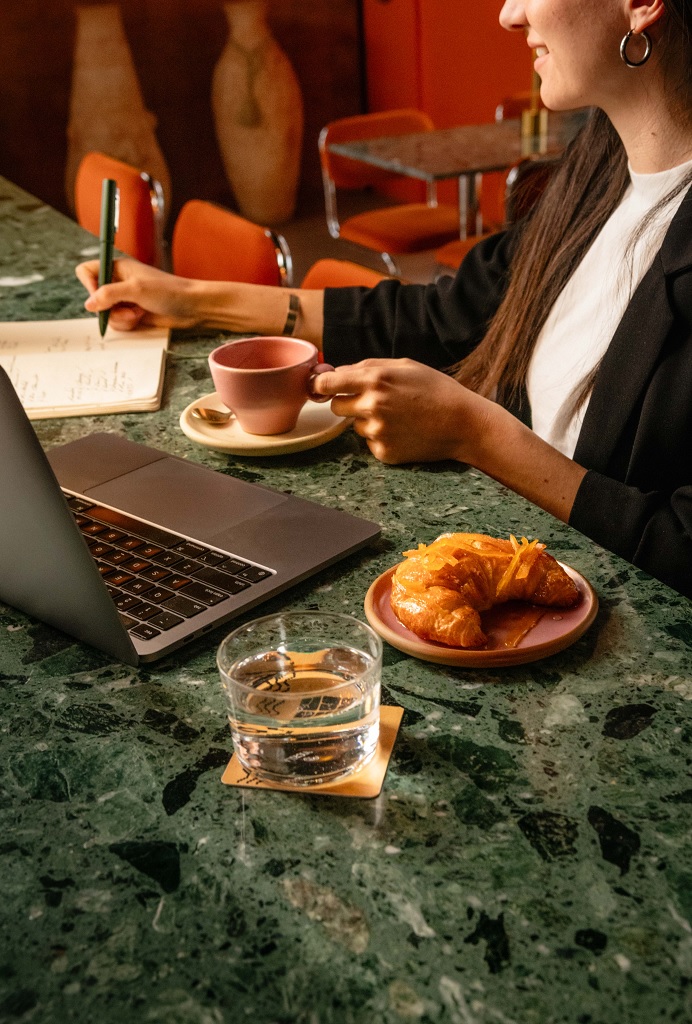 En la cocina son visionarios del tiempo así que, además de darle lugar a detalles, preparan combos con panificados para una primera comida del día más express: medialunas con almíbar de naranja, budín de chocolate y remolacha o limón y amapola, chipá o diversas cookies.