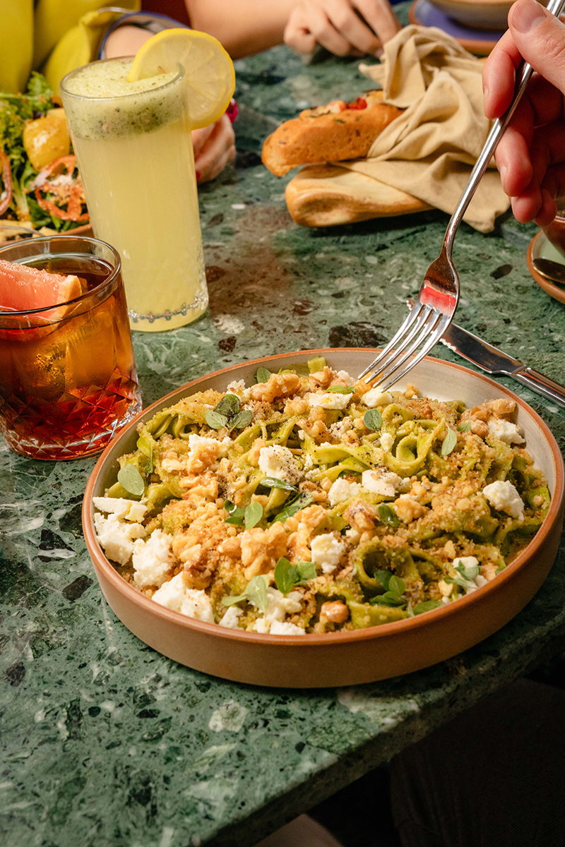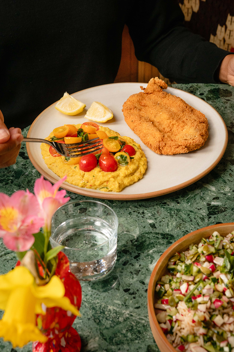 A una milanesa de pollo y humita cremosa con tomates y albahaca es imposible decirle que no. O a la pasta casera y pan fritato más pesto de albahaca, queso reggiano y nueces o salsa pomodoro.