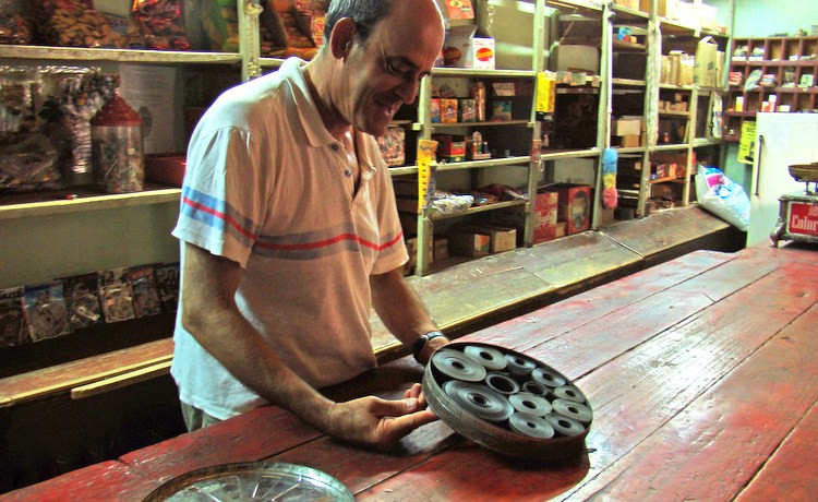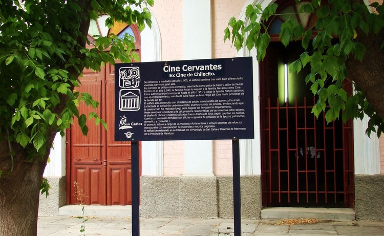 De lejos vemos a un hombre sentado. En la vereda, Pedro Reján contempla la tarde en una vieja silla, en el frente de lo que todos conocen como el Cine Cervantes, ex Cine de Chilecito o Bar y Cine Reján. Solo, sin un alma en los alrededores, pareciera que Pedro estuviera esperando para darle vida a su bar antiguo. Enseguida nos invita a pasar y nos sirve Pepsi-Cola en vasitos de vidrio. Detrás del mostrador típico de una pulpería de campo, Pedro trae todo tipo de objetos del recuerdo, entre ellos una vieja lata de película, con el rollo de celuloide. Es que al lado del bar está la sala de cine con pisos de pinotea, una pantalla importante, algunas butacas preservadas y marquesinas con películas del siglo pasado. Pedro cuenta que proyectaban dos películas y en el intervalo la agente podía pasar al bar a tomar algo. La sala de proyecciones está arriba y desde allí se puede ver la sala y el bar.