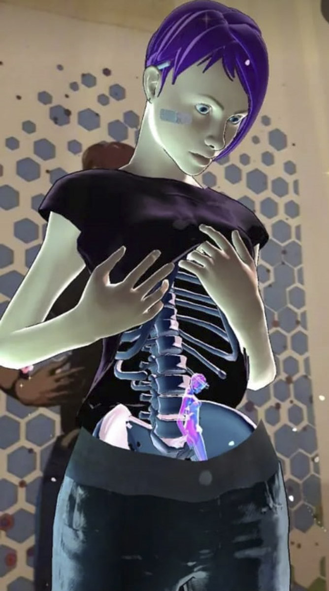 Una vez adentro, y celular en mano, las mujeres dejan de estar dibujadas y empiezan a moverse y a quedar desnudas hasta los huesos. Dentro de la mujer hay otra mujer, dentro de la otra mujer hay más: la imagen se sigue moviendo y te cuenta la historia que quieras. Él asegura que es el reflejo de la propia sombra del filósofo y psiquiatra Carl Jung. «Podés estar horas, porque pasan muchas cosas», acota.