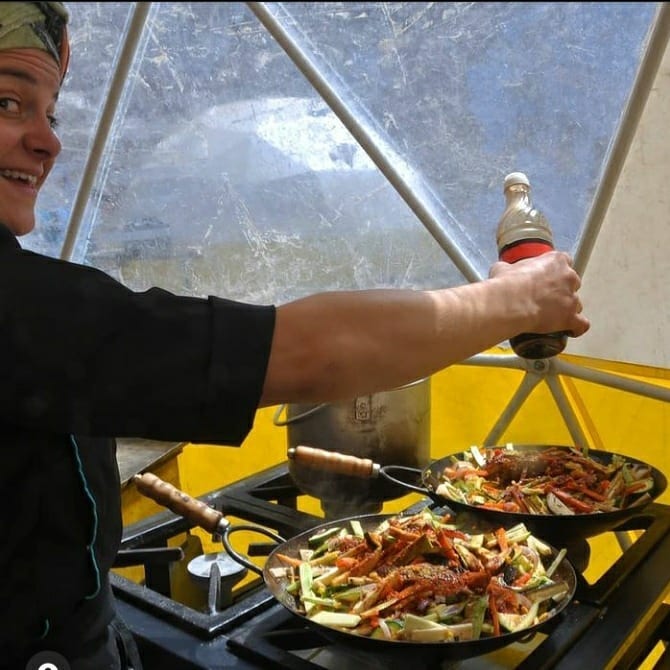 Huilen Pascual no sólo planifica un menú y cocina a la par de sus compañeros sino que también piensa en el sistema de producción óptimo para la montaña, y así logró crear el suyo propio para implementar en cada campo base del mundo.