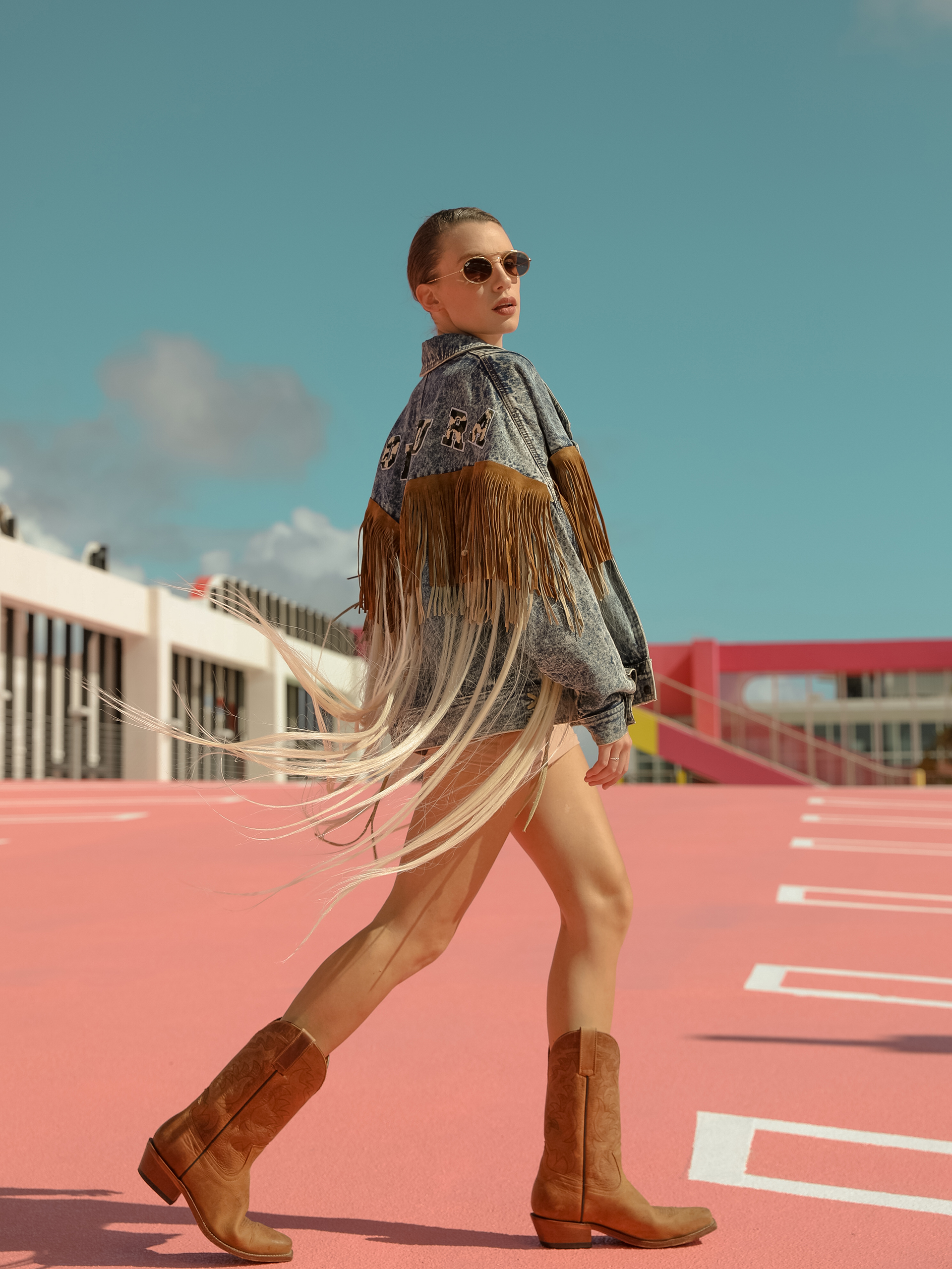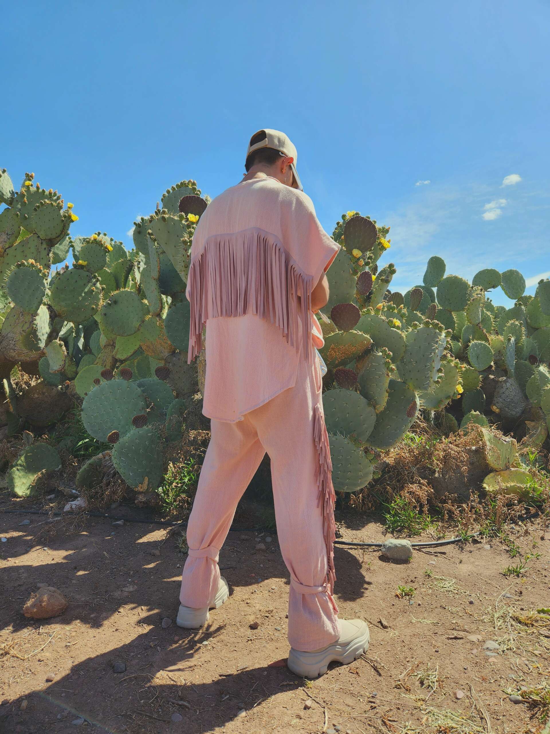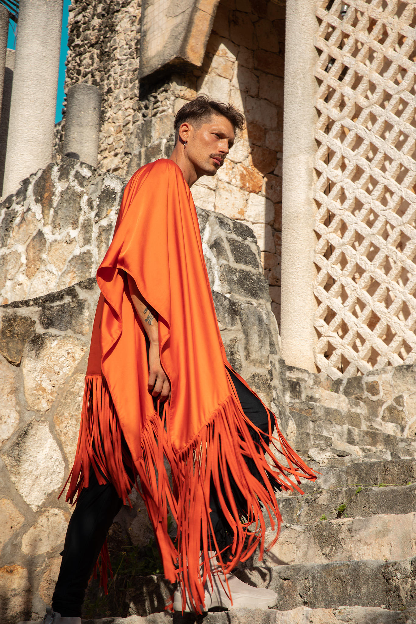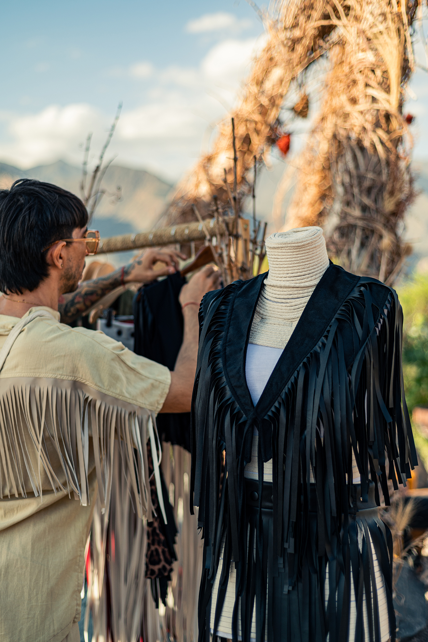 ¿Y el fleco de dónde salió? Bueno, a todos nos pasa que cuando vamos a ver ropa siempre nos tiramos por un color o una tela en específico. A ellos les pasa con los flecos, es una elección casi inconsciente. Además, siempre les llamó la atención toda la representación histórica que trae consigo, pero querían descontextualizar la manera clásica de usarlos.