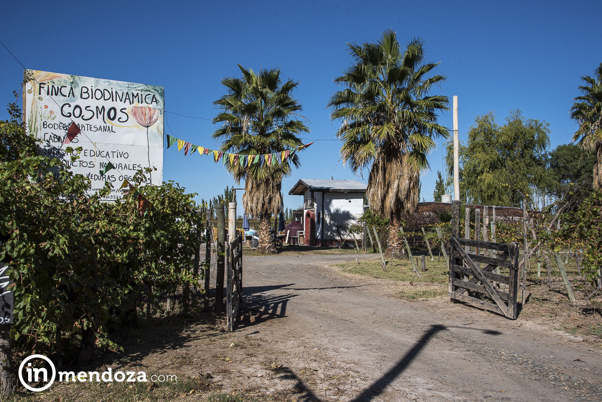 Por toda la finca se puede ver la flor del cosmos, una especie silvestre de color lila que atrae pájaros y mariposas, además de «embellecer el alma». Por ella, el nombre Finca Biodinámica Cosmos. Se encuentra dividida por sectores: viñedos, frutales, huerta y hortigas. El corazón de la «granja» – término que suele utilizarse en este tipo de agricultura – es el compost. Todo tiene que ver con todo. Es como un cuerpo humano en el que las cosas funcionan bajo un calendario.