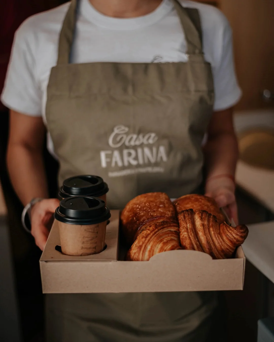 Cada croissant en Casa Farina es una obra de paciencia y dedicación. Desde la creación de una masa firme que sostenga el empaste, pasando por un laminado preciso hecho completamente a mano, hasta un leudado lento y controlado que mantiene la humedad y la esponjosidad, todo en su proceso es meticuloso. La cocción intermedia les otorga ese dorado perfecto y una textura crocante que estalla en el paladar. Su compromiso con la calidad ha llevado a que sus croissants sean comparados por visitantes franceses con los de su país de origen, un reconocimiento que habla del nivel de detalle y pasión que los hermanos Juli, Flor y Fede imprimen en cada pieza.