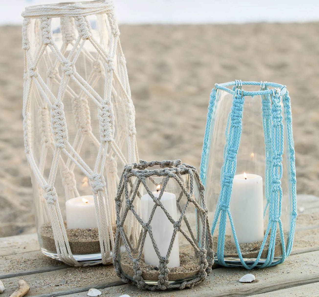 Con frascos podés hacer floreros y porta-cepillos en el baño, por ejemplo. Solo hay que atornillar unas argollas metálicas en un trozo de madera al natural e introducirles los frascos. También portavelas o macetas colgantes en frascos o macetas recubiertas con tejidos de macramé.