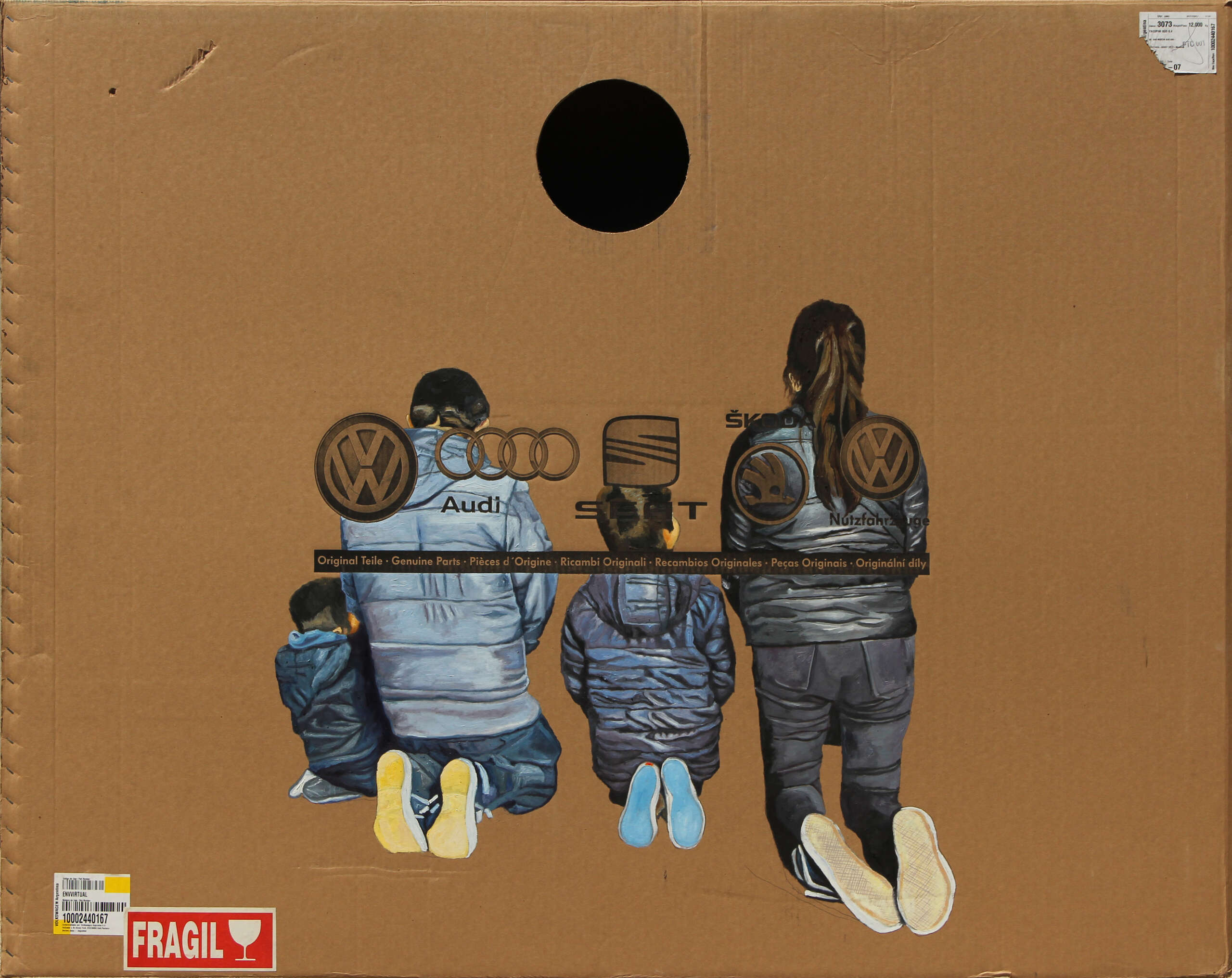 En medio de la preparación de una gran muestra que montará en el ECA en diciembre, Murillo nos regaló su valioso tiempo para conversar de toda su vida y de su alegría por recibir la mención que le permitirá que su obra «El misterio del capitalismo» pase al patrimonio y a la colección del Museo de Bellas Artes. Se trata de una pintura realizada en una caja grande de paragolpe de auto en la que se ve a «una familia rezando a un augero, como si fuera un sol negro».
