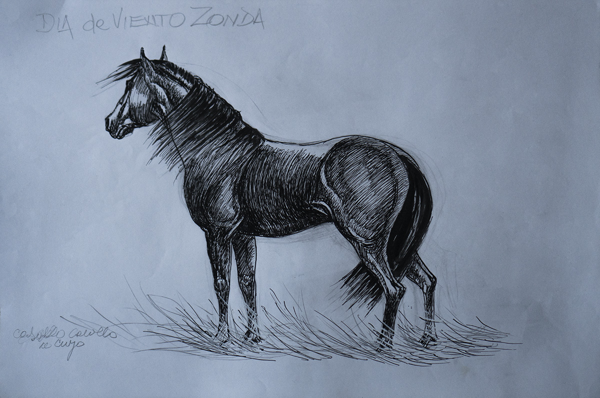 «Siempre dibujé el cuerpo humano y caballos. Los conozco tanto que me especializo en que se noten las características de cada raza», cuenta el artista autodidacta que suele sumar perros y personas a sus creaciones para contextualizar a los equinos.
