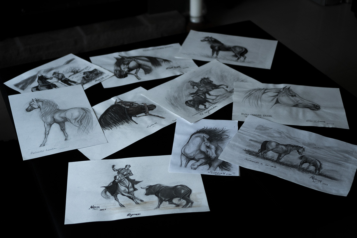 «Dicen que el caballo es lo más difícil de dibujar por su estructura ósea y muscular pero a mí me encanta. Lo más complicado de hacer son las cabezas. Desde que dejé el consultorio dedico como tres horas diarias a dibujar pero de día porque ya no veo bien en la noche».