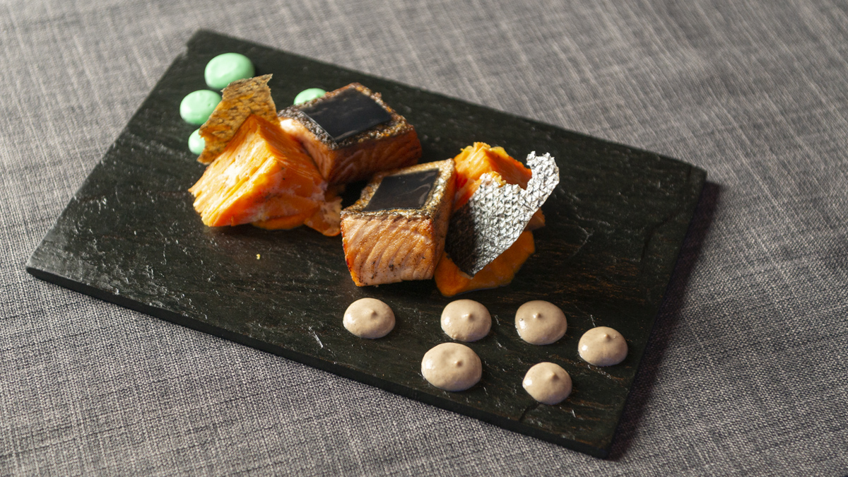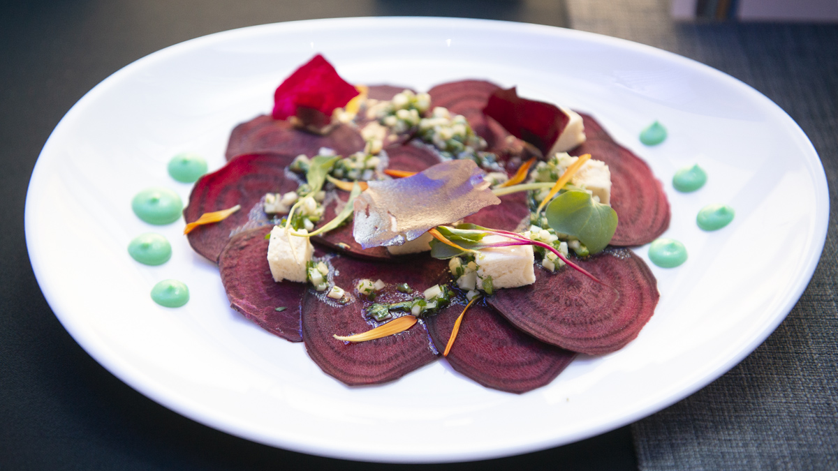 Carpaccio de beteraba con mouse de parmesano y salsa de gremolata o una degustación de empanadas (pollo y queso azul, arañita braseada, zucchini hongos y parmesano), son algunas de las opciones para las entradas. Achicoria, lollo roso, kale frito, huevo codorniz con aderezo de frutilla, aceto y crocante de arroz, es otra de las ensaladas preparadas y, en principales hay, por ejemplo, salmón en velo de tinta de calamar acompañado con mil hojas de zanahoria y emulsión de té verde o esfera de lentejas, cremoso de pimientos amarillos con yogurt natural cítrico.