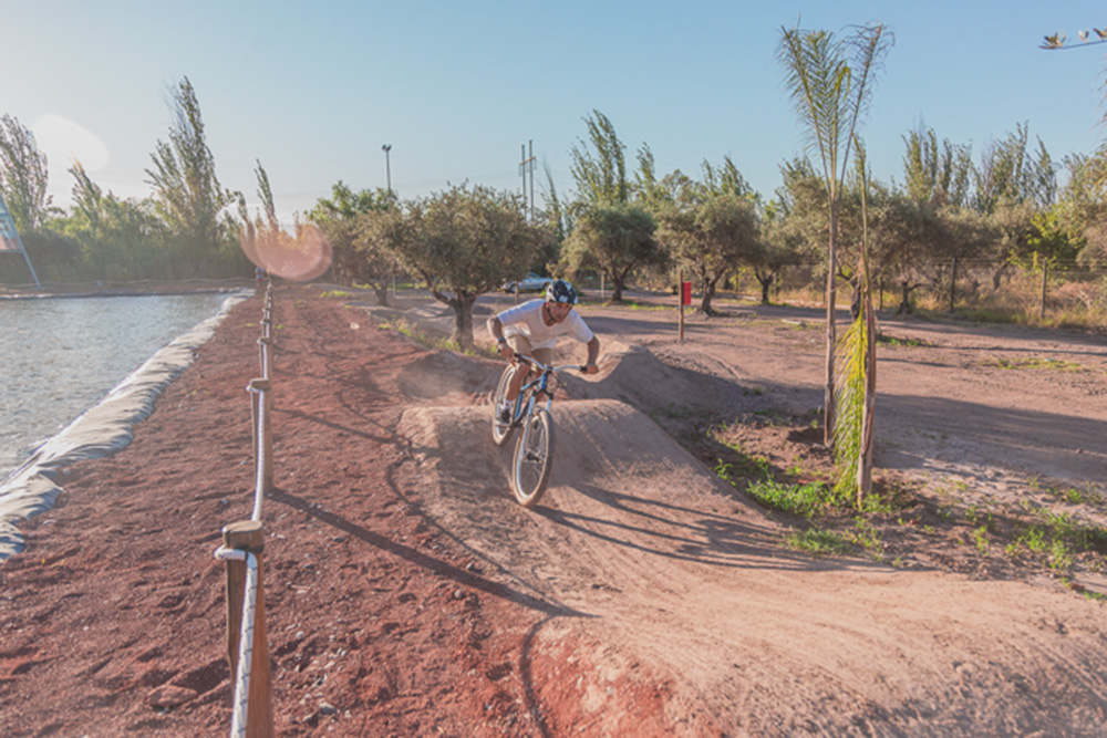 El proyecto ubicado en Coquimbito (Maipú) dispone de un circuito de bici, mini ramp para skate, palestra de escalada, senda de running, paddle surf, yoga, entre otros, además de un local de alquiler de equipos y de sitios de esparcimiento como una playa de arena cercana a la laguna donde sucederá la magia deportiva.