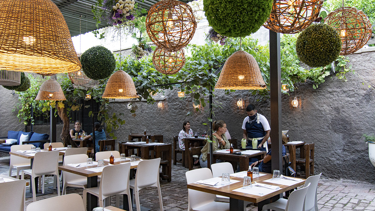 En la barra del patio sucede otra magia: te sirven un Negroni de la casa, macerado con higos, o cualquiera de las tres variedades de vermut de La Gloria. Y si te gusta el gin, también tenés infusiones con almíbares y tónicos propios.