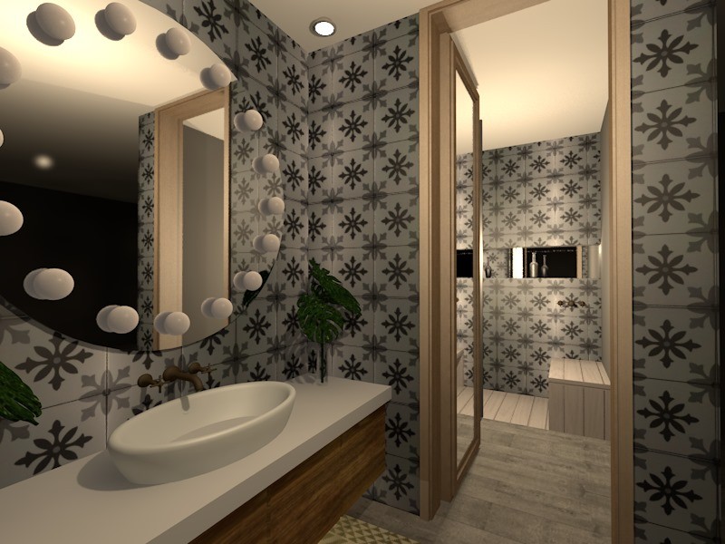 En mis propuestas uso placas de piso y revestimiento de muros con diseños estampados o imitación madera. Estos materiales me permiten trabajar con colores oscuros aún en los baños  gracias a la gran variedad en efectos de iluminación, incluso en bajo consumo, como así también con colores o totalmente blancos, aunque el gris es la paleta por excelencia esta temporada.