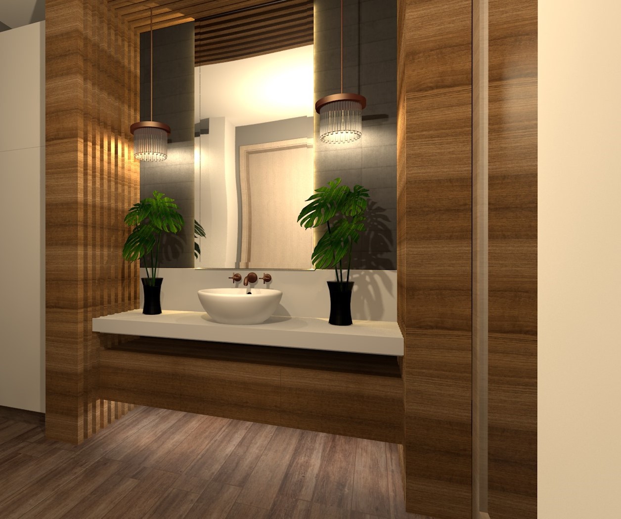Un buen recurso es  incorporar plantas u hojas verdes  naturales como contraste con los materiales del baño, le otorgan un efecto natural al espacio.