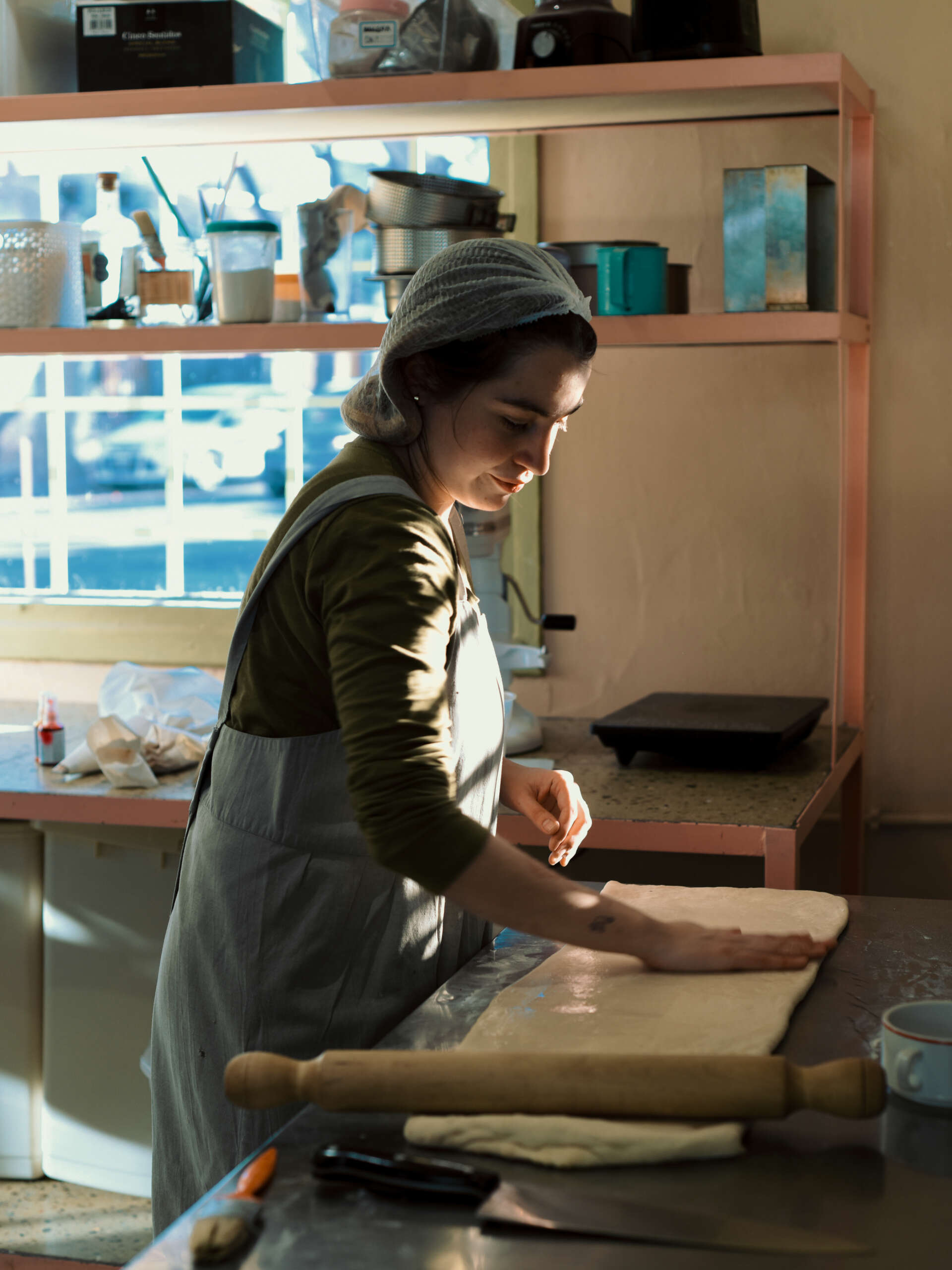 Sus creaciones combinan tradición con creatividad. Tortitas, medialunas, palmeritas y madeleines conviven con brownies de pistacho y sacramentos con rellenos inimaginables. Además, todos sus laminados están hechos a mano, utilizando el clásico palote y son horneados a diario en el local.