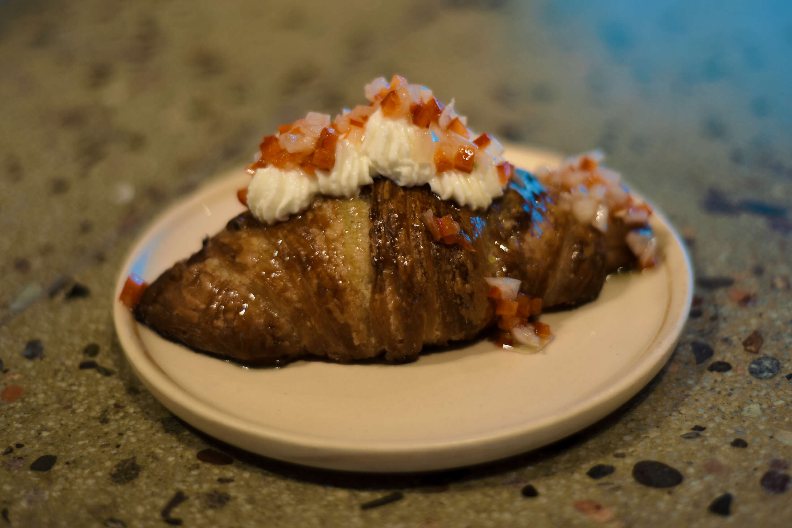 Pero una de las creaciones más curiosas que se puede encontrar en el lugar es el sacramento de morcilla. Esta curiosidad está hecha con la masa de hojaldre típica de las medialunas y en su interior lleva morcilla y pera. Almíbar y hojas de menta y queso crema terminan de coronar esta delicia.