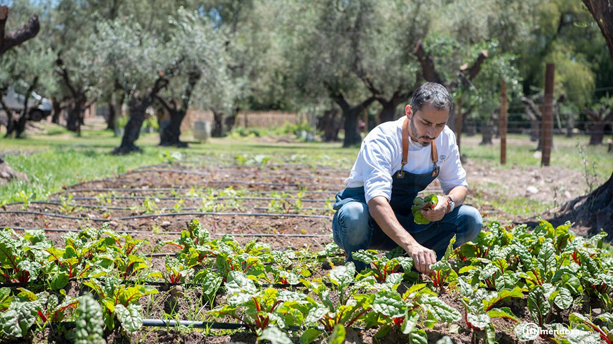 Espacio Trapiche pertenece a Peñaflor, quinto grupo vitivinícola del mundo. La envergadura de la empresa hace posible este lujo que se da el chef, quien detalla los tres ejes sobre los que se apoya la agricultura biodinámica. «Necesitamos un ecosistema en equilibrio, biodiversidad donde se respeta a cada ser vive que coexite en este sistema, una agricultura orgánica y el calendario lunar», dice y agrega que trabajan con la filosofía de Rudolf Steiner, quien entiende que la energía magnética de la luna afecta las mareas y lo mismo le sucede a todos los seres vivos compuestos de gran cantidad de agua. «En el caso de las plantas es clarísimo cómo la savia baja y sube; la plata pone su energía en las raíces para nutrirse o en los frutos para la continuidad de la especie, dependerá del momento en que tomes sus frutos, los sabores y aromas que obtengas».