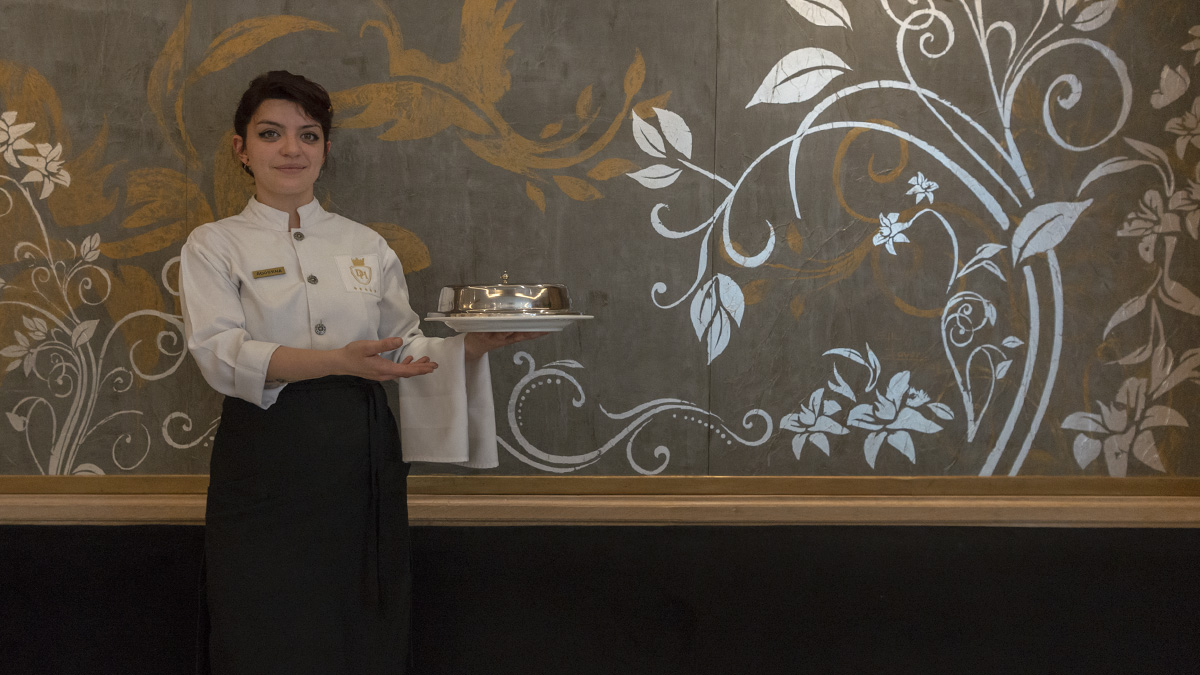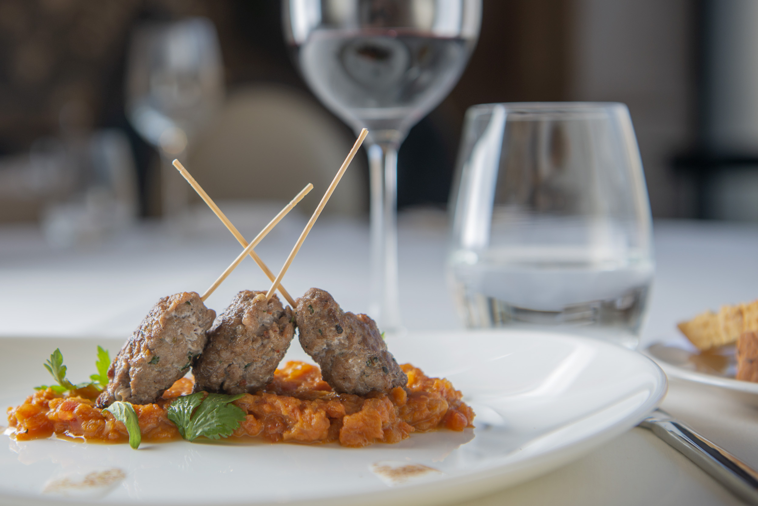 La host nos recibe sonriente y dispuesta a brindarnos toda la información necesaria para vivir con admiración los servicios del hotel. Nos dispusimos a entrar al restaurante. El lugar cuenta con dos espacios: el bar, en donde se puede consumir tapas y una copa de cerveza artesanal u otras bebidas, lo que hace más ágil la elección; o el restaurante, en donde hay un menú con un número estimativo de quince platos y una variada carta de vinos con más de doscientas etiquetas.