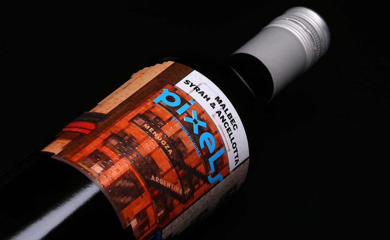 Tener un vino Pixels y un teléfono en la mano resulta toda una experiencia visual y sonora, es que la etiqueta de cada variedad del vino tiene diferentes elementos de ciudades que crean una nueva para que el consumidor la sienta como propia.