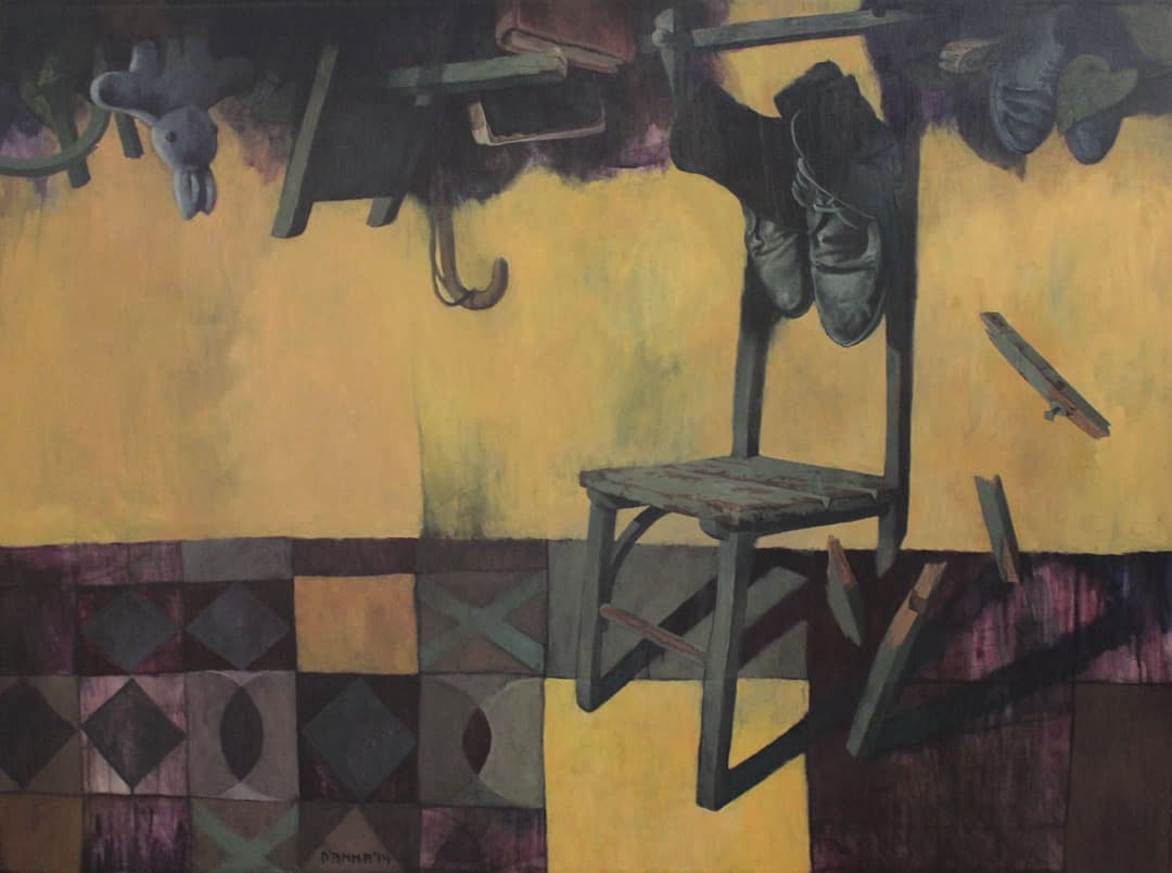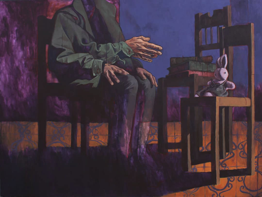 «Es lo último en lo que he estado trabajando. Es la acción de introspección y de despojo de las pieles, de dejar las pieles afuera», explica Guillermo sobre estos cuadros en los que hay trajes sin brazos, sin cabezas y sin humanos.