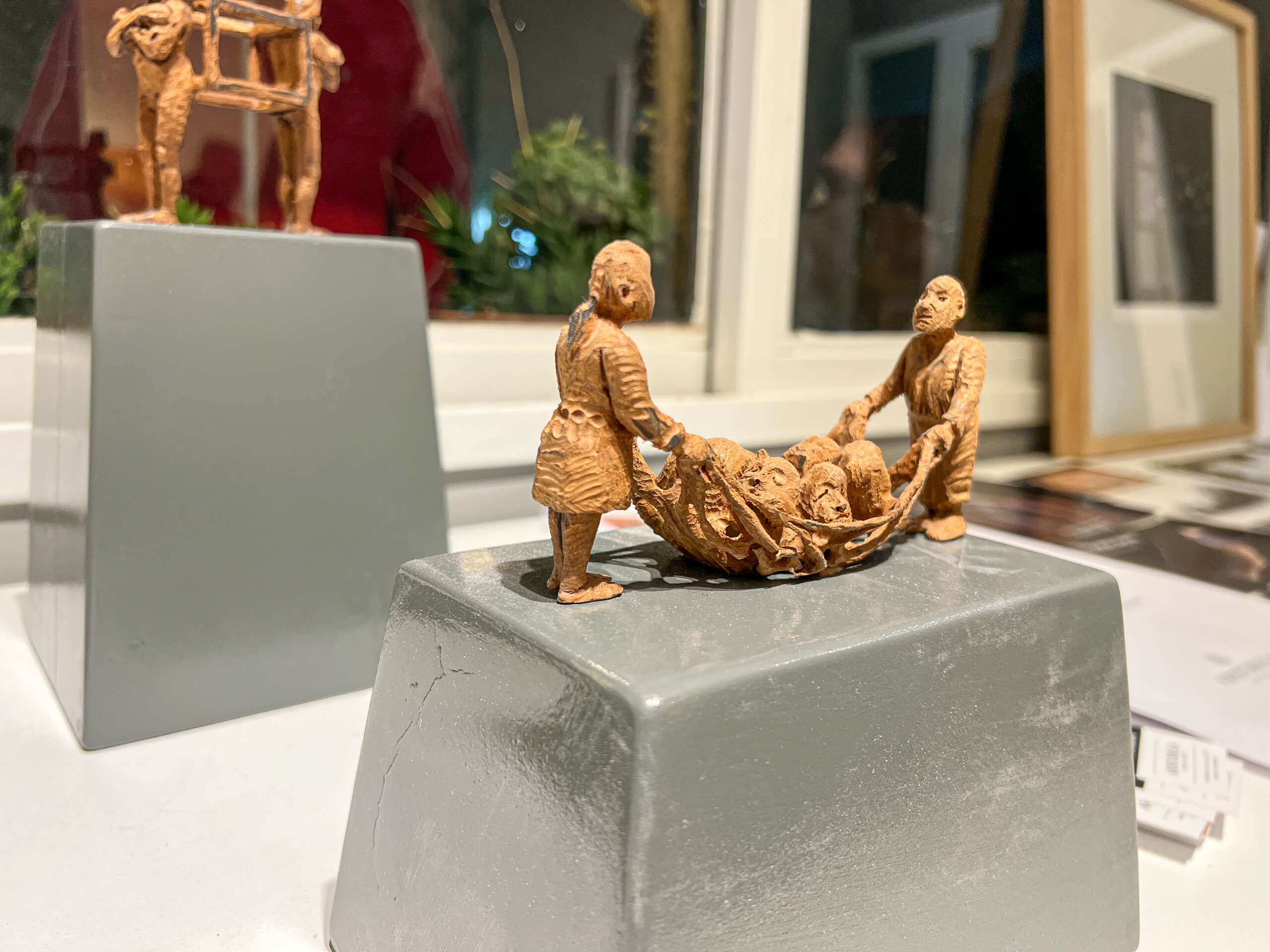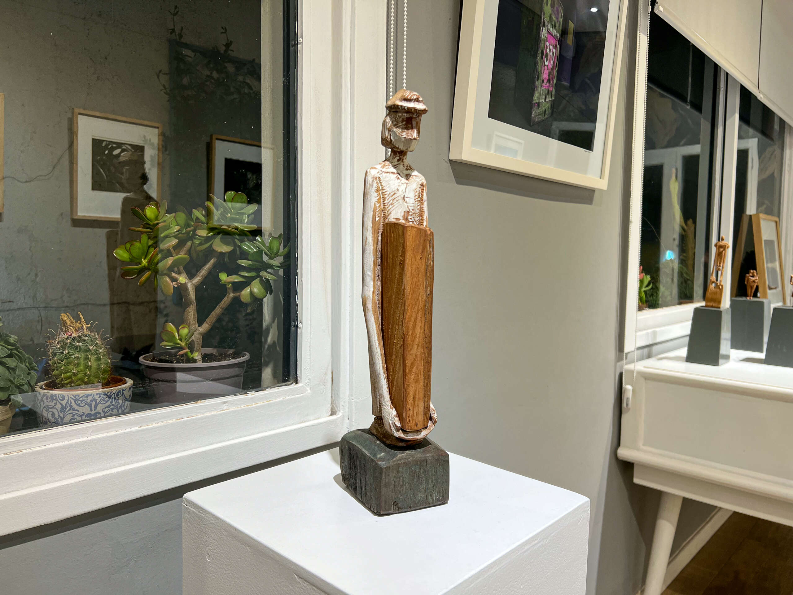 Por su parte, Federico expone un grupo de esculturas en miniatura que oscilan entre los 10 y 20 centímetros. Todas ellas figurativas y talladas en madera de una sola pieza.