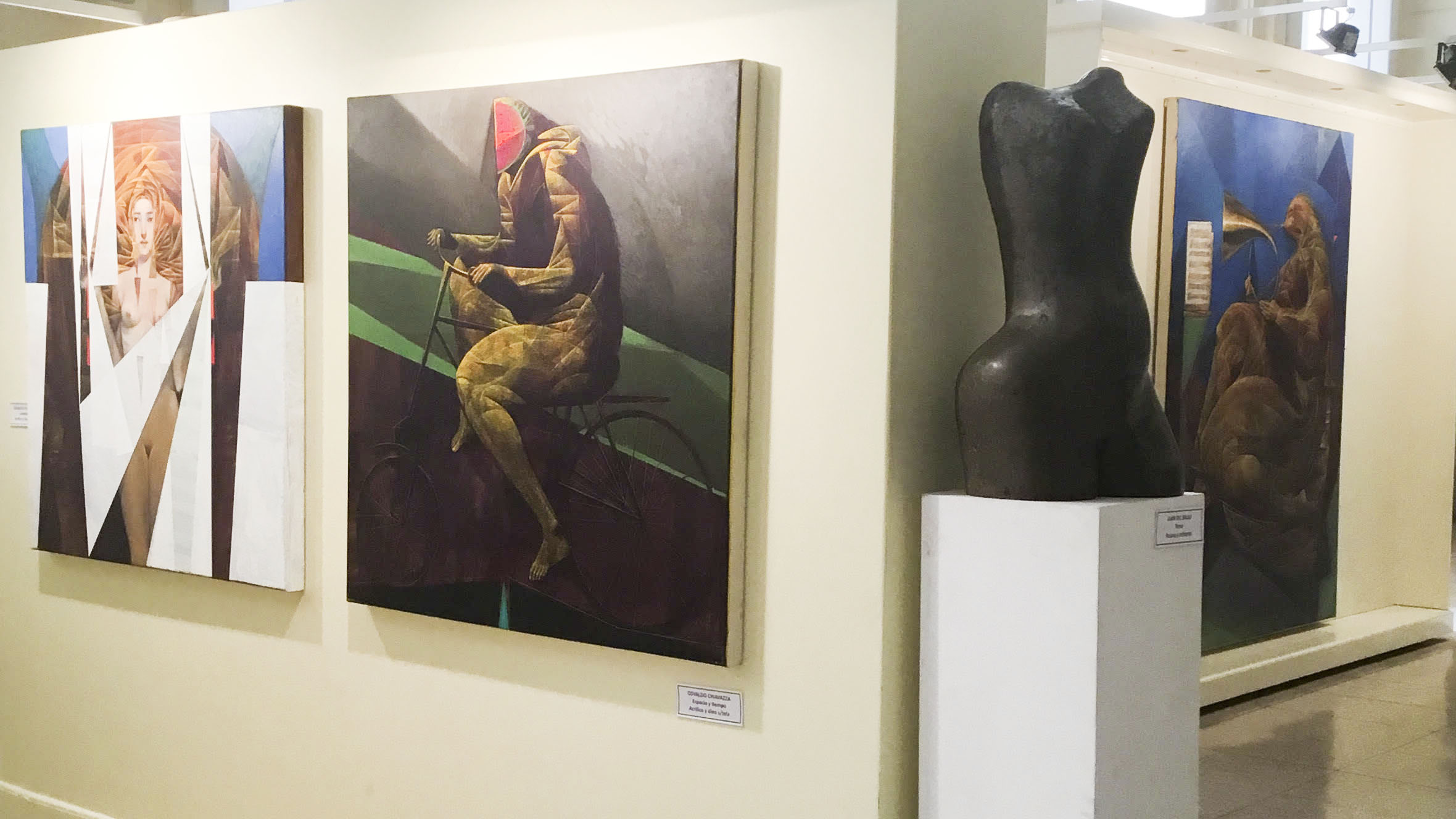 Además de realizar esculturas con una gran técnica y precisión, también se dedicó a la pintura. Ambas disciplinas tienen como nexo su intuición sensible, aquella intuición exclusiva de las artes y que tiene la posibilidad de superar al concepto. Sobre su obra pictórica, él mismo dijo que tiene una «perspectiva oculta». «La llamaba perspectiva oculta a una perspectiva que no es ni la atmosférica, ni la lineal. Tiene que ver con el arte egipcio, el cual se parece mucho al cubismo en esto de mostrar una parte y obviar otra; no es descriptivo ni naturalista, sino más mental. Hay que imaginarse lo que simbolizan esos objetos», explica Osvaldo.