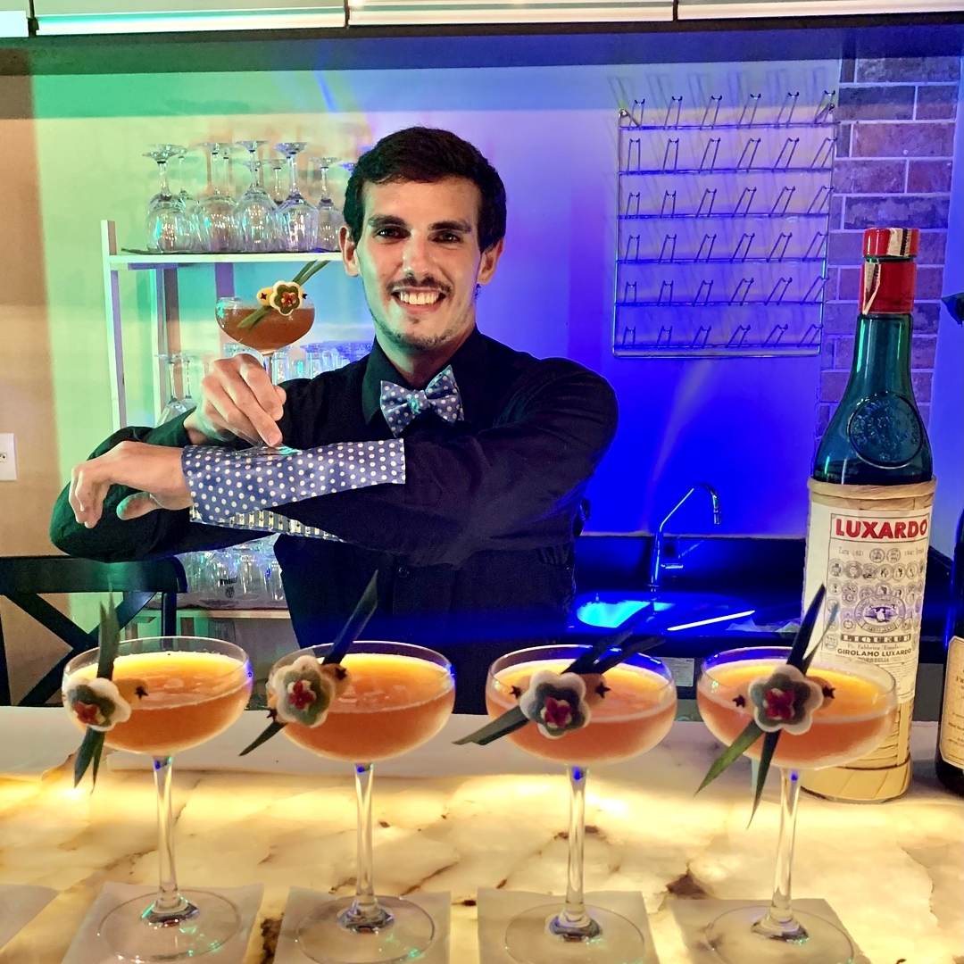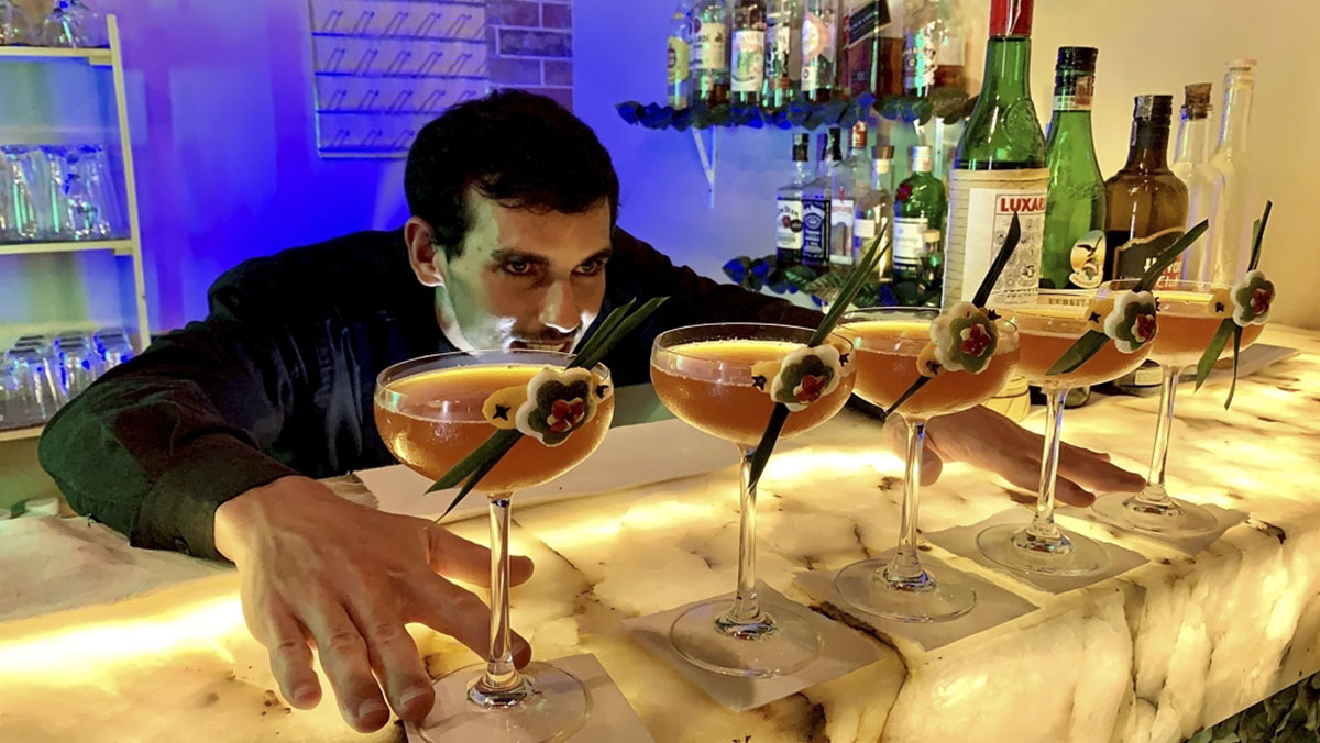 «Barrilete cósmico» es el nombre del trago que lo llevó al segundo lugar de las elimintarias nacionales y le permitirá competir entre los mejores bartenders del continente. Sus ingredientes son: Luxardo Maraschino, fernet Branca, ron Havana Club 7 años, zumo de pomelo y un almíbar de mango especiado con granos de café.